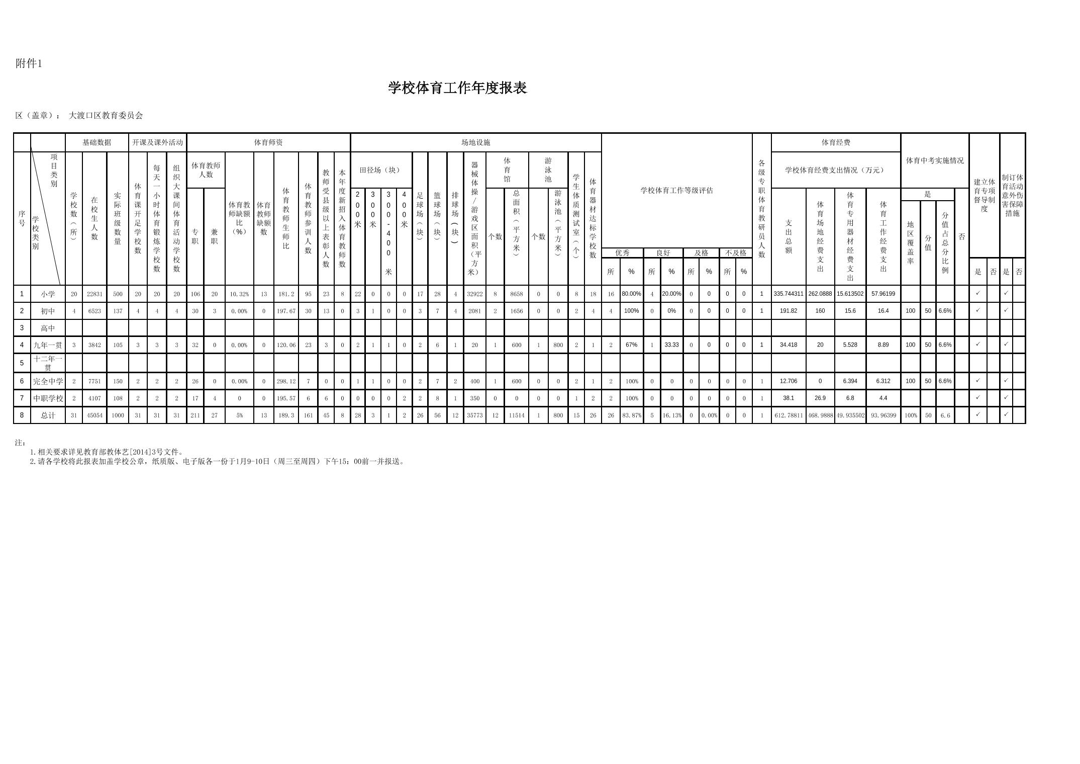 学校体育工作年度报表