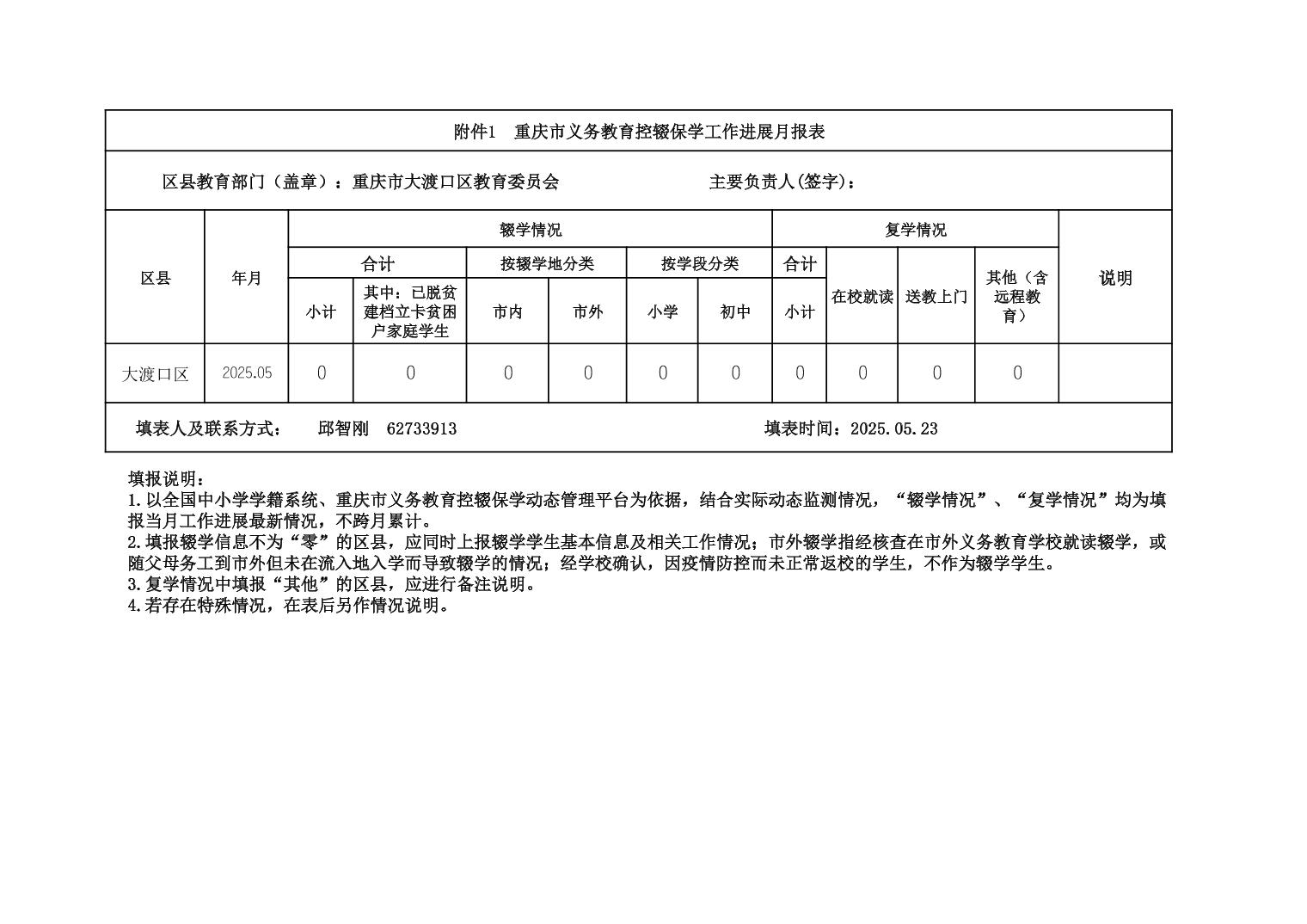 重庆市义务教育控辍保学工作进展月报表-20250523-大渡口
