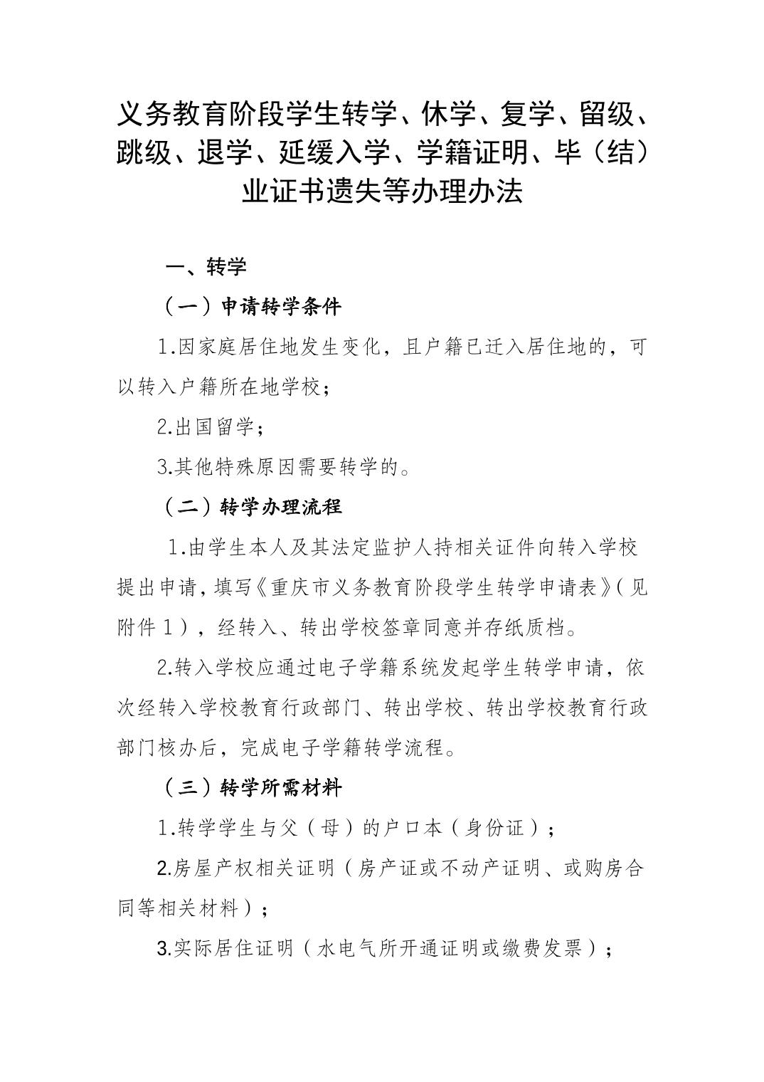 义务教育阶段学生转学、休学、复学、留级、跳级、退学、延缓入学、学籍证明、毕(结)业证书遗失等办理办法.pdf