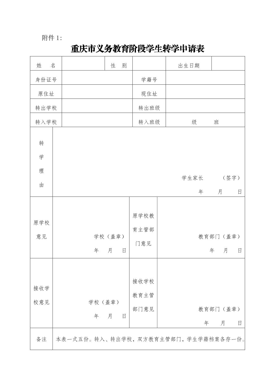 附件1:重庆市义务教育阶段学生转学申请表.doc