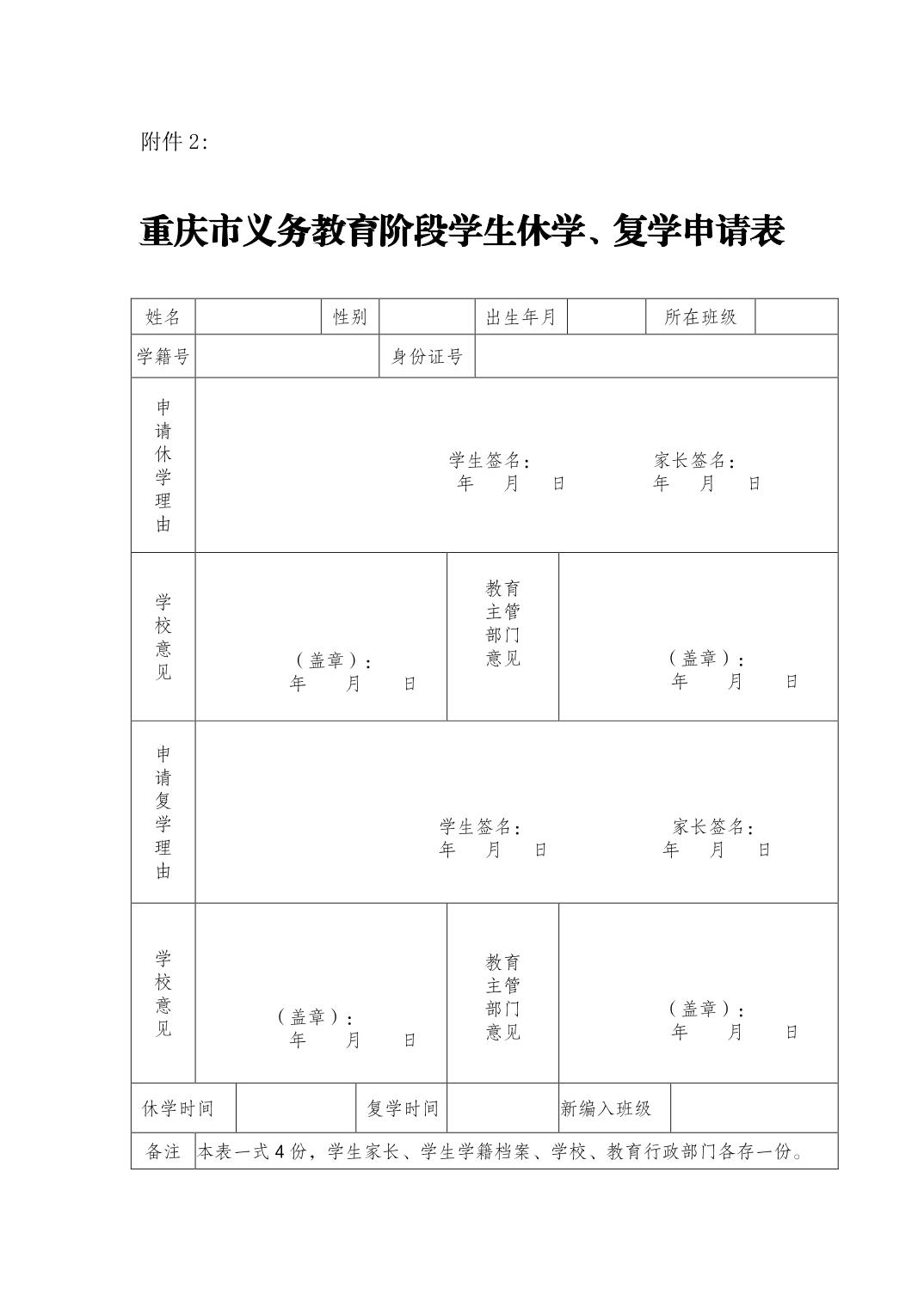 附件2:重庆市义务教育阶段学生休学、复学申请表.docx