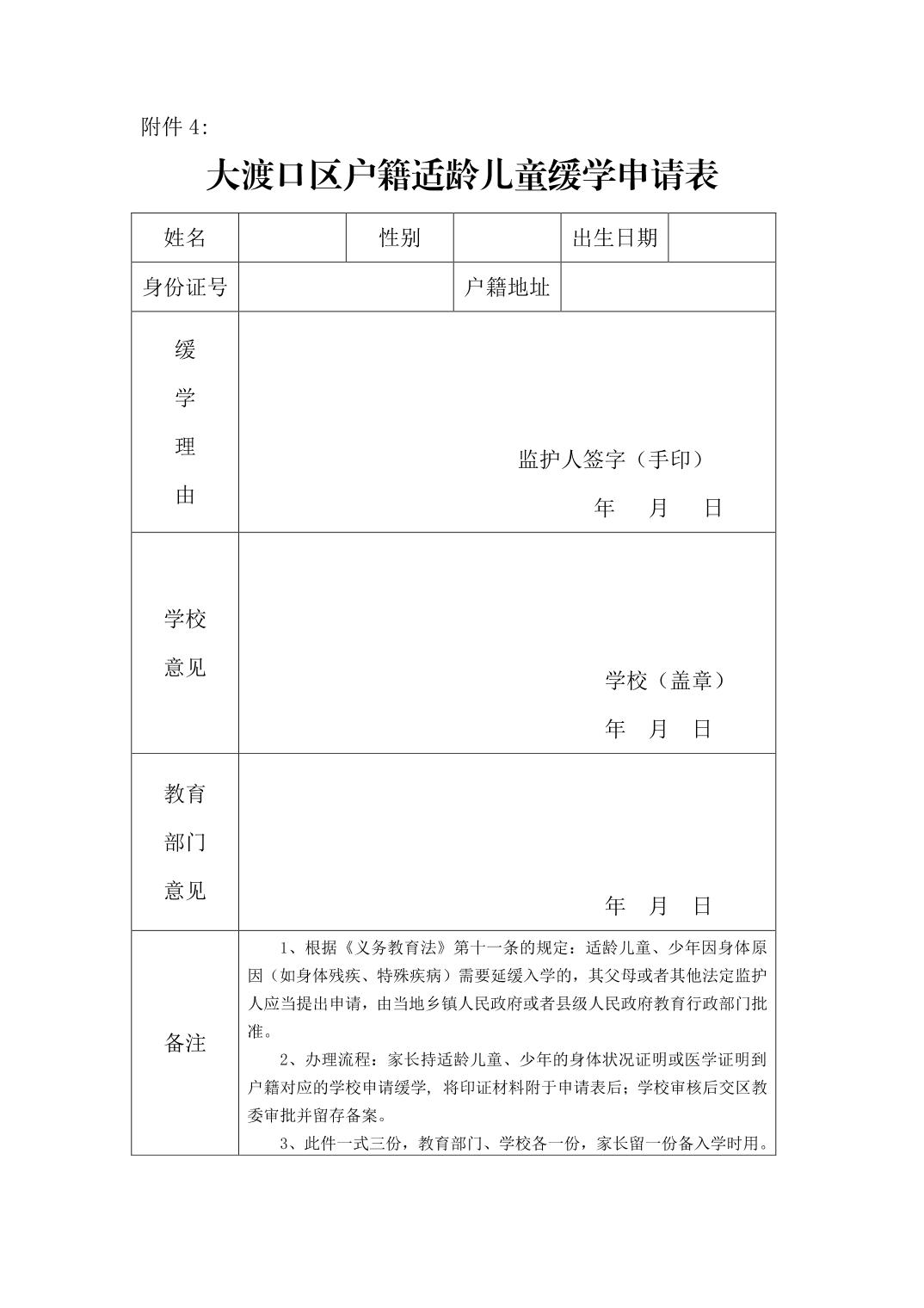 附件4:大渡口区户籍适龄儿童缓学申请表.docx