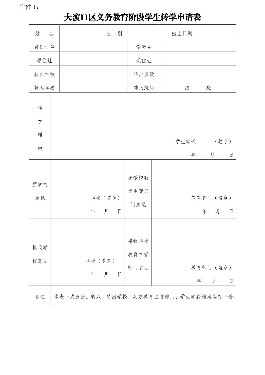 附件1-大渡口区义务教育阶段学生转学申请表.doc