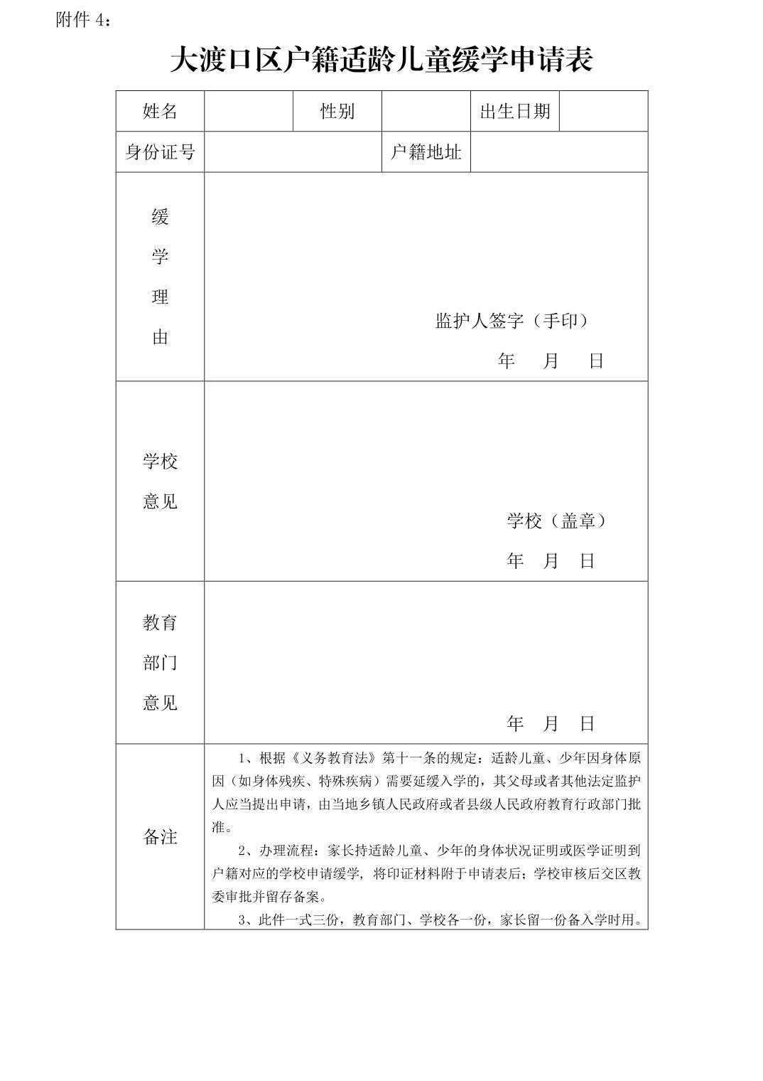 附件4-大渡口区户籍适龄儿童缓学申请表.docx