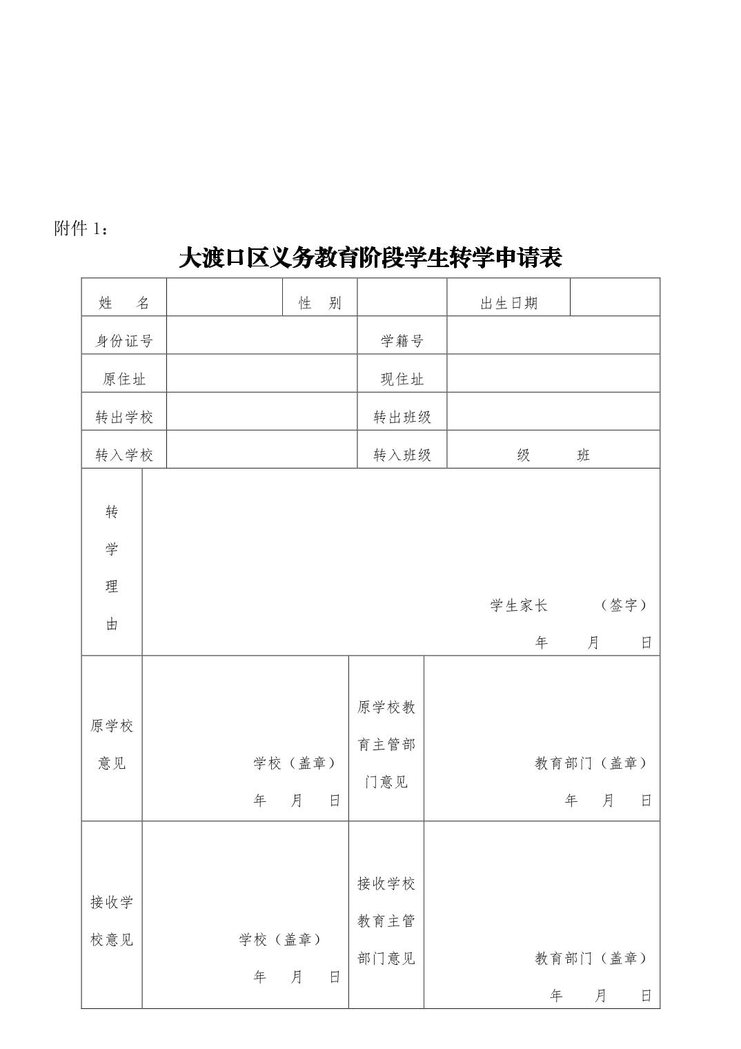 附件1-大渡口区义务教育阶段学生转学申请表.doc