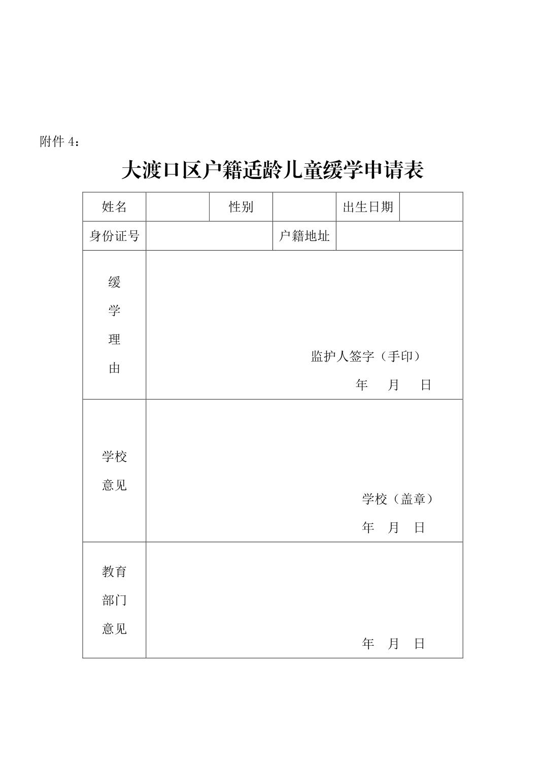附件4-大渡口区户籍适龄儿童缓学申请表.docx
