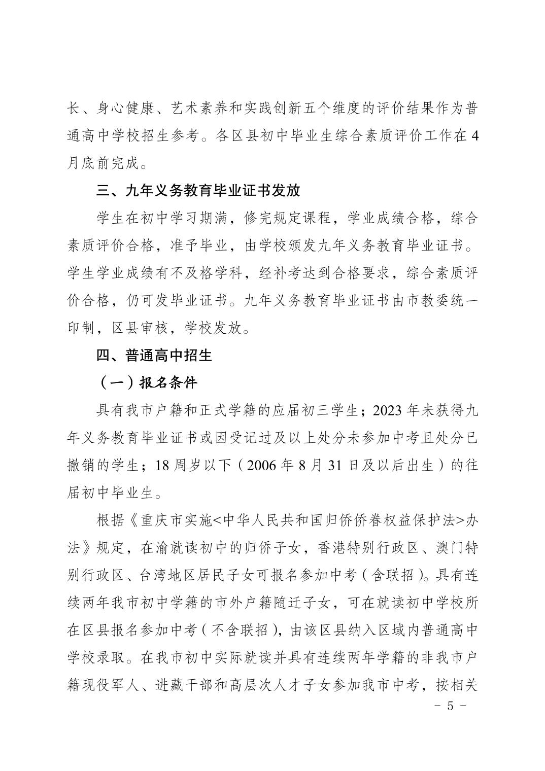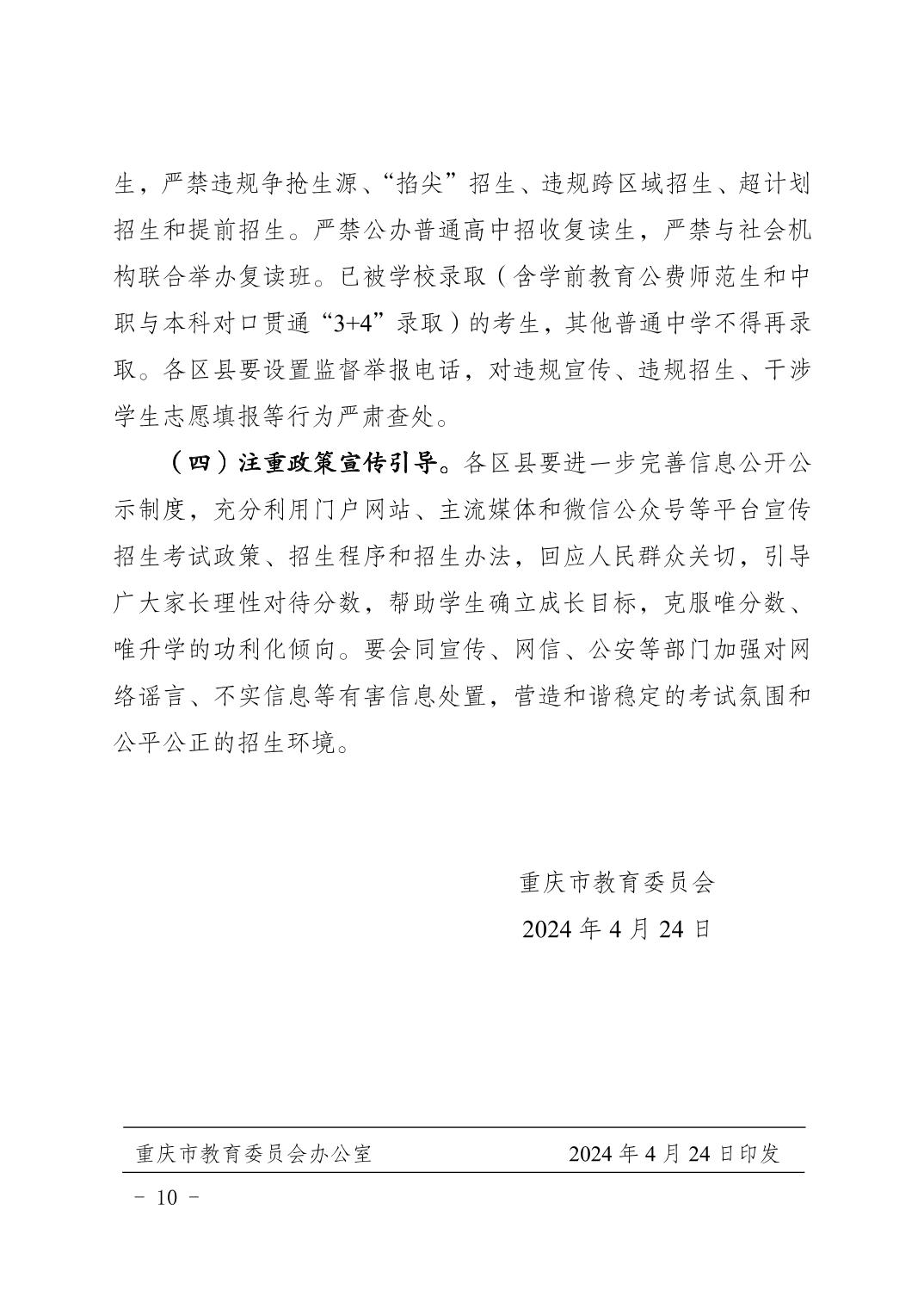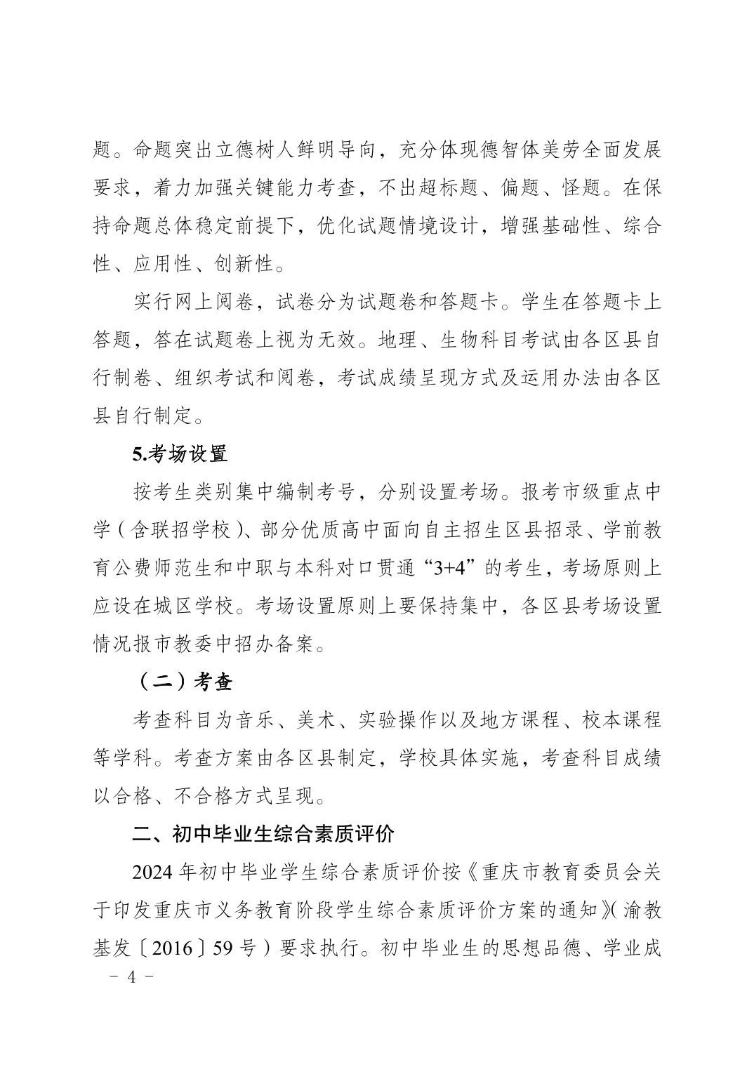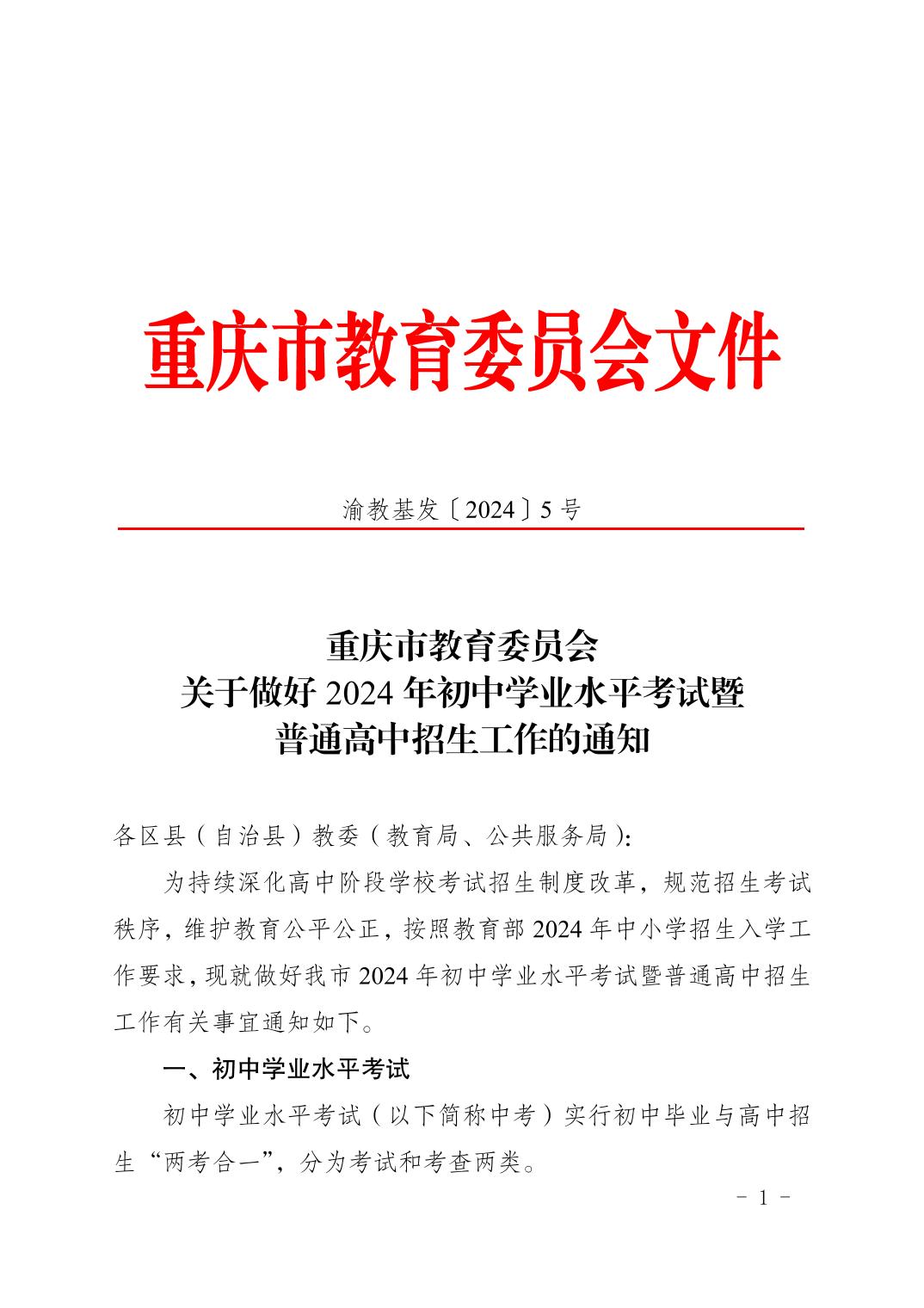 渝教基发〔2024〕5号关于做好2024年初中学业水平考试暨普通高中招生工作的通知