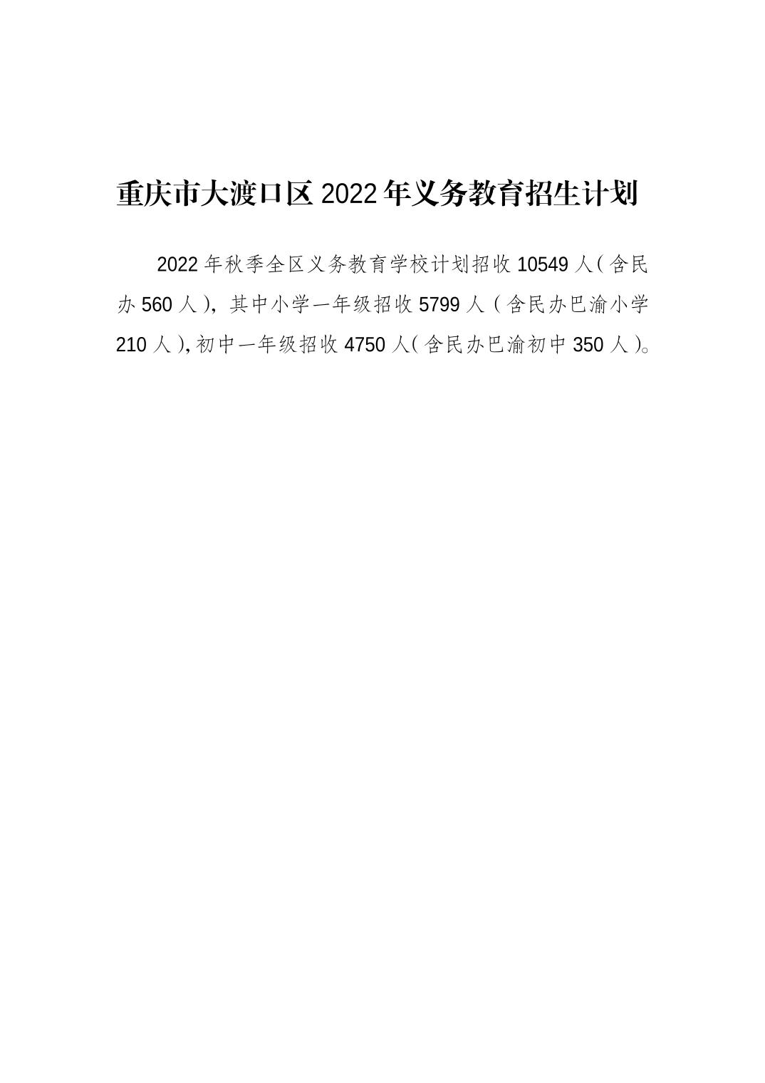 重庆市大渡口区2022年义务教育招生计划
