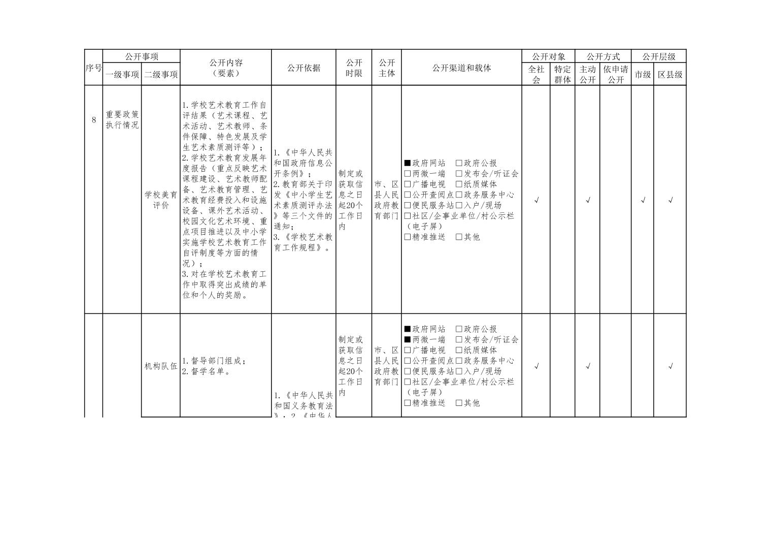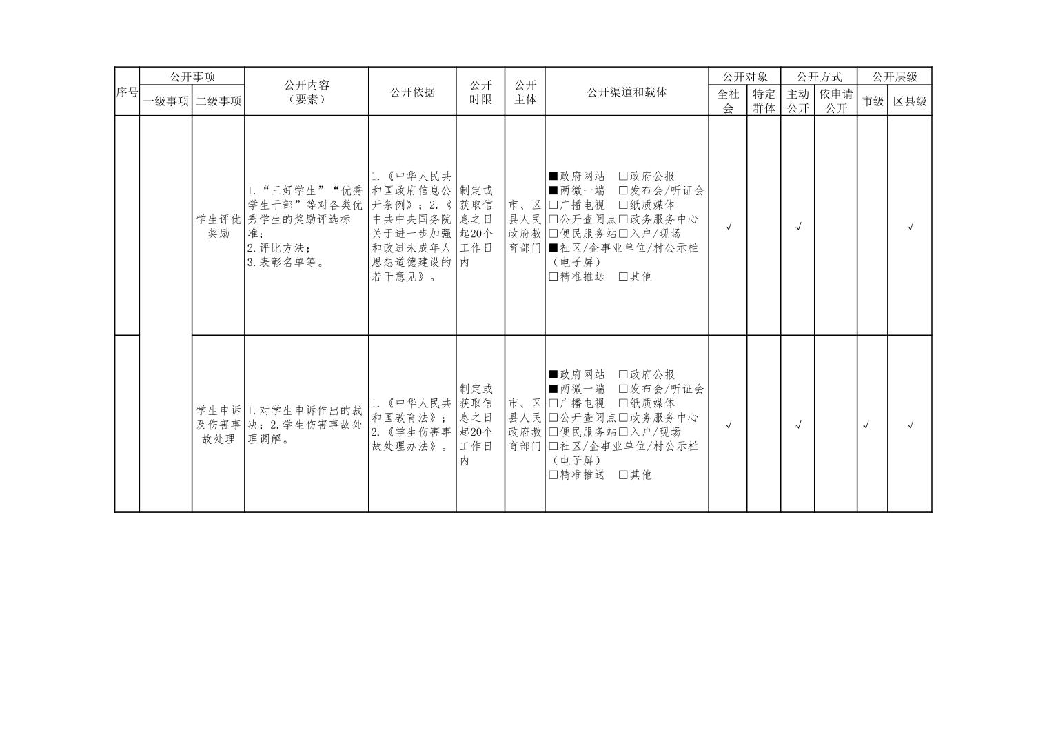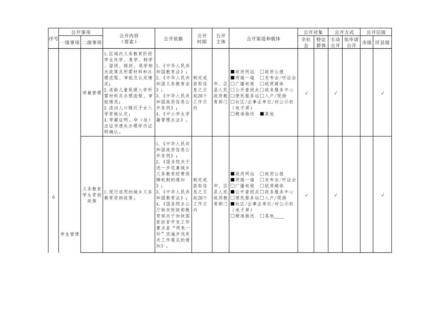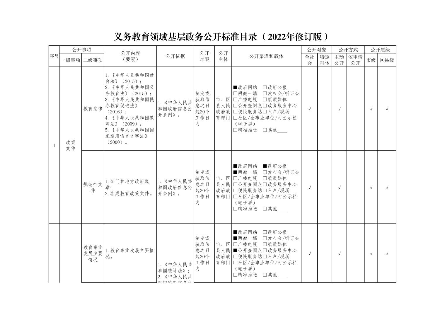 义务教育领域基层政务公开标准目录(2022年修订版)