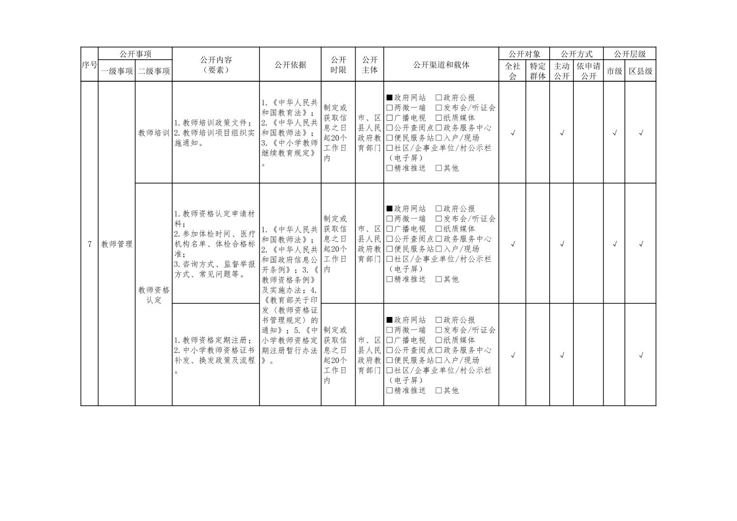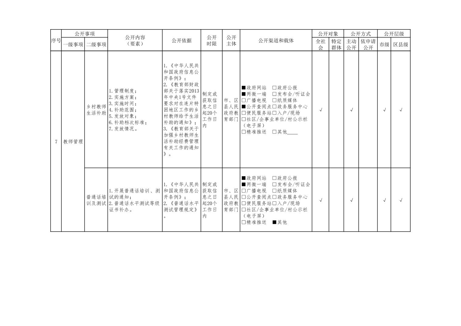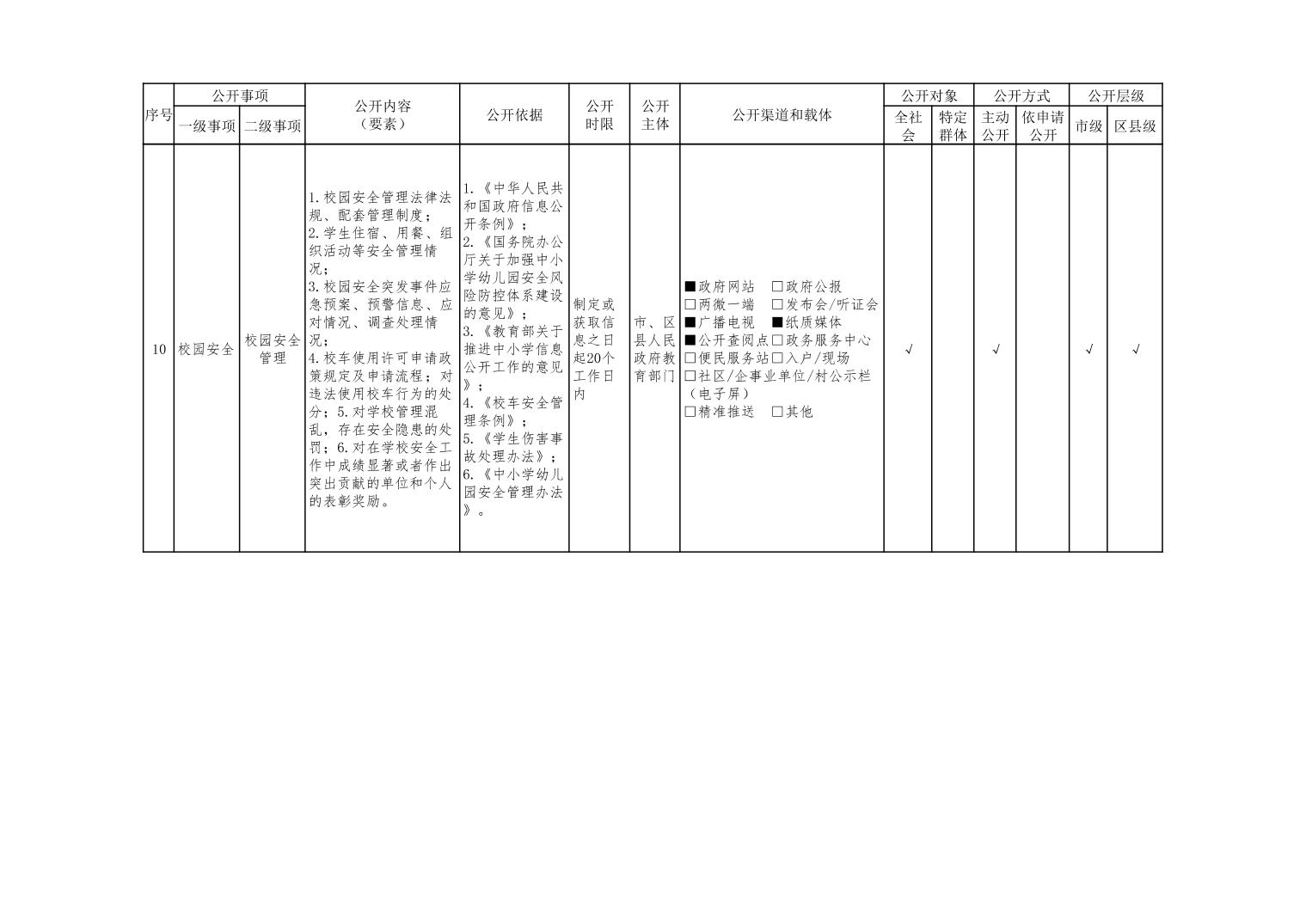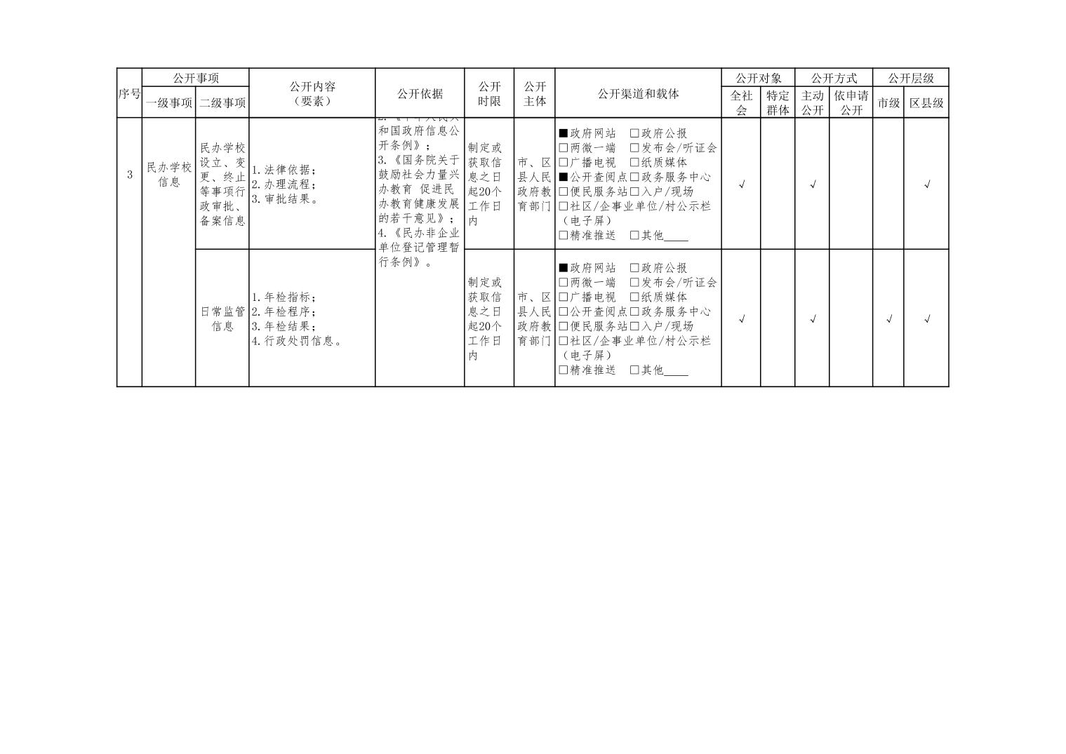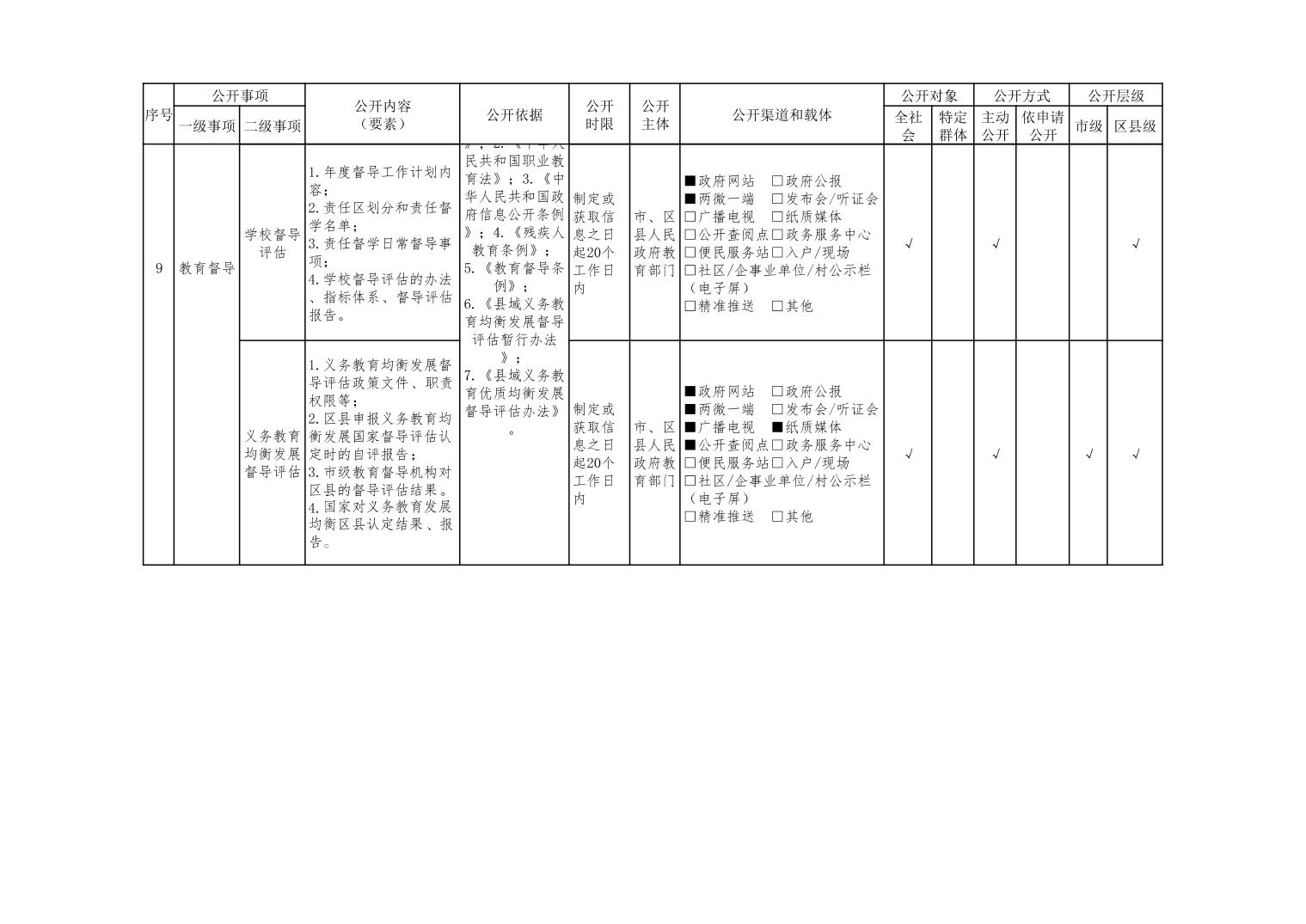 义务教育领域基层政务公开标准目录(2022年修订版)