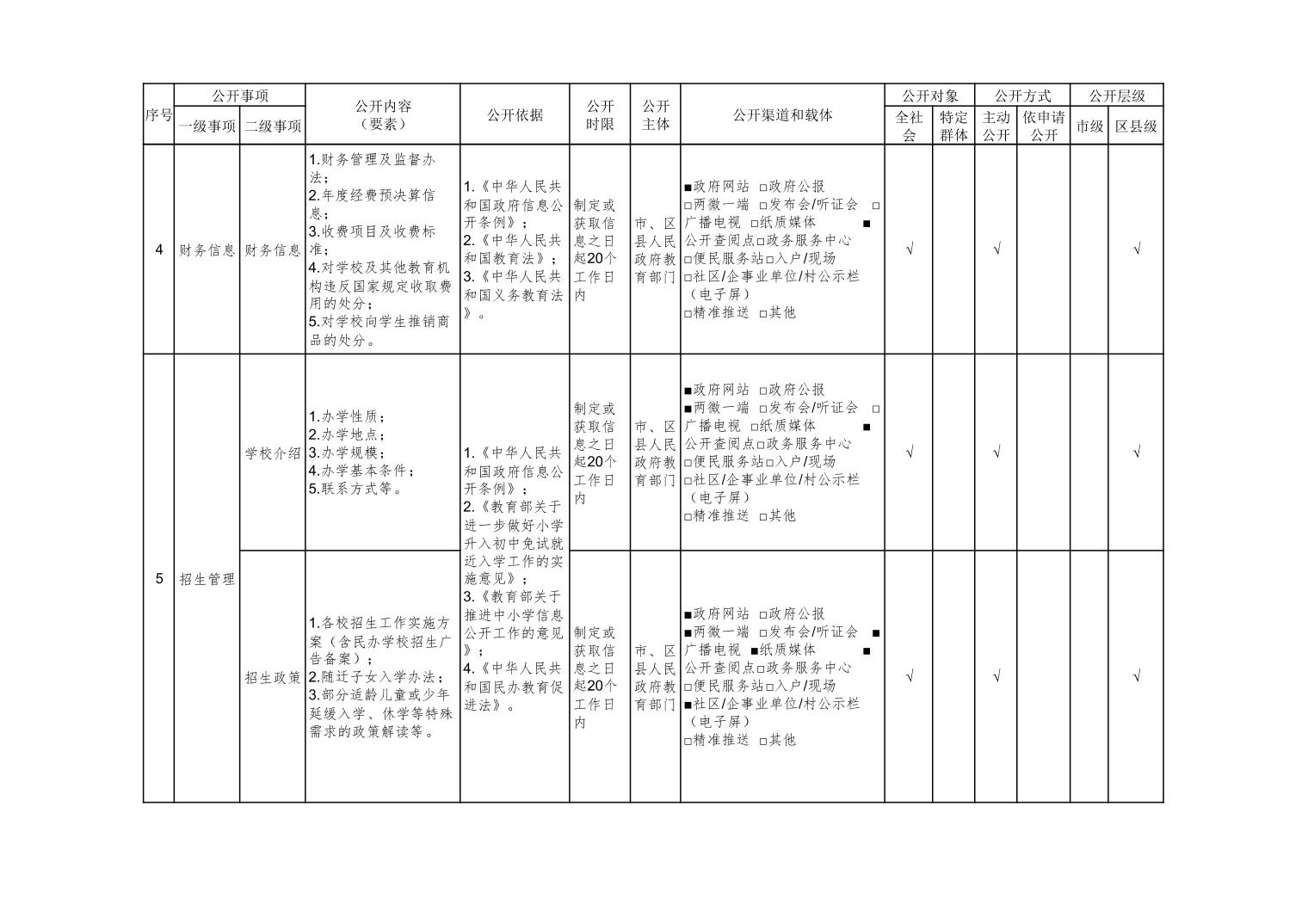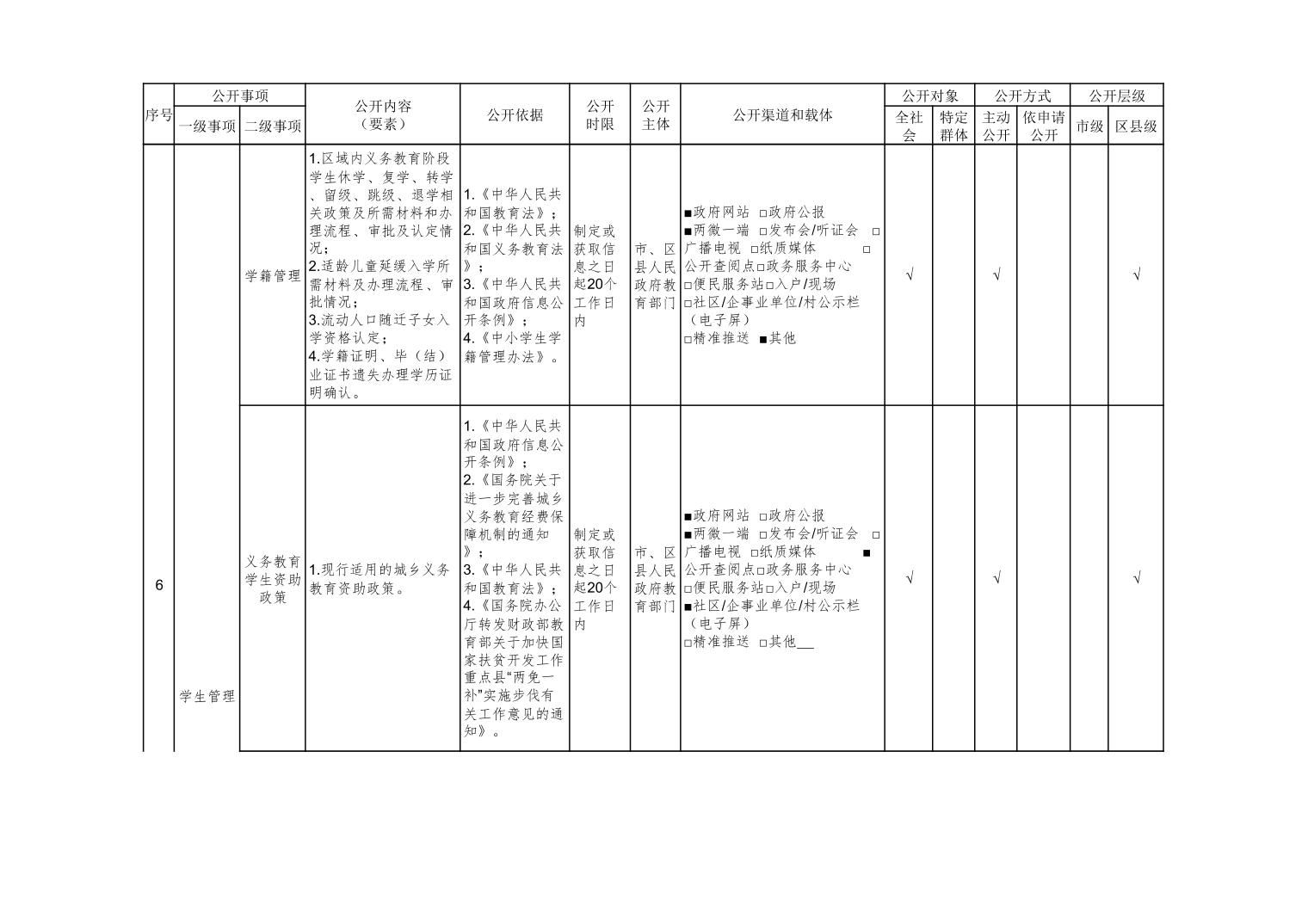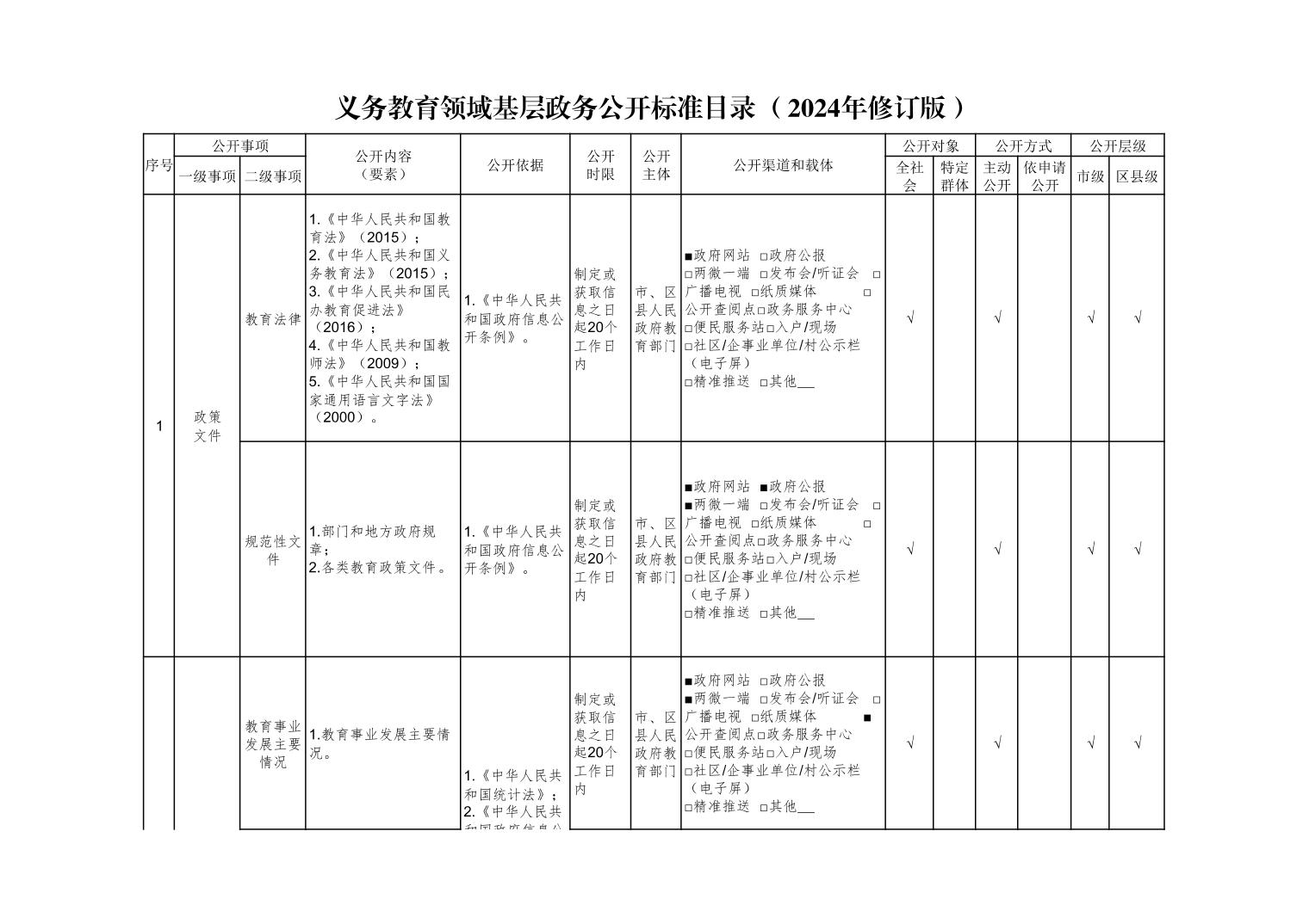义务教育领域基层政务公开标准目录(2024年修订版)