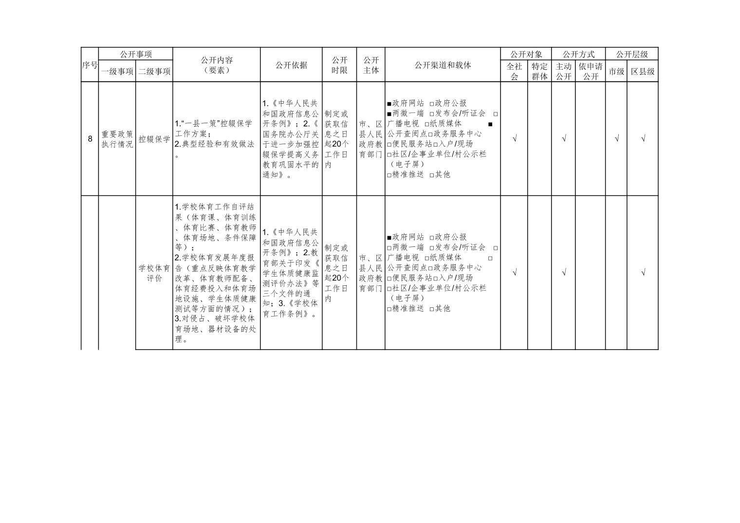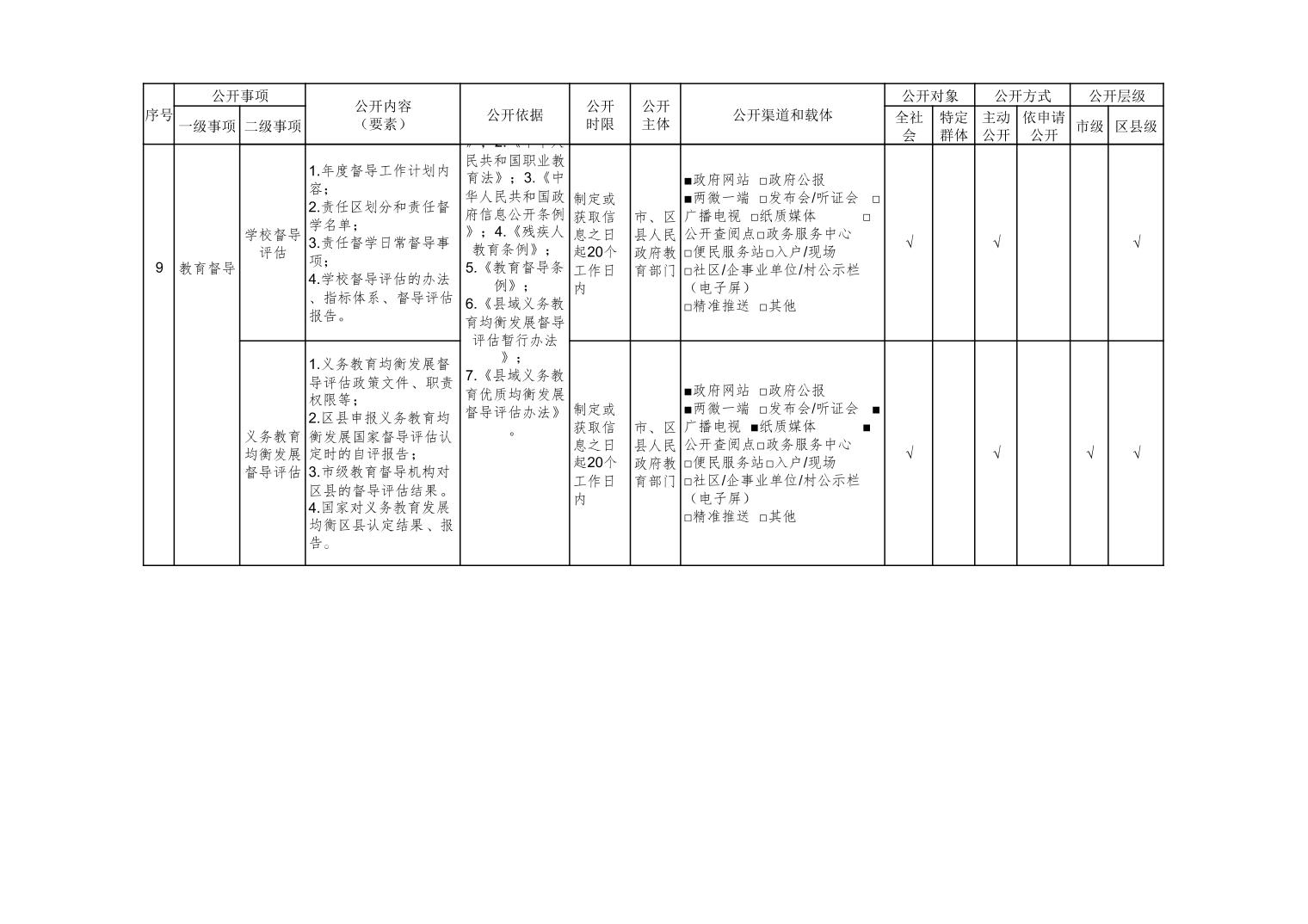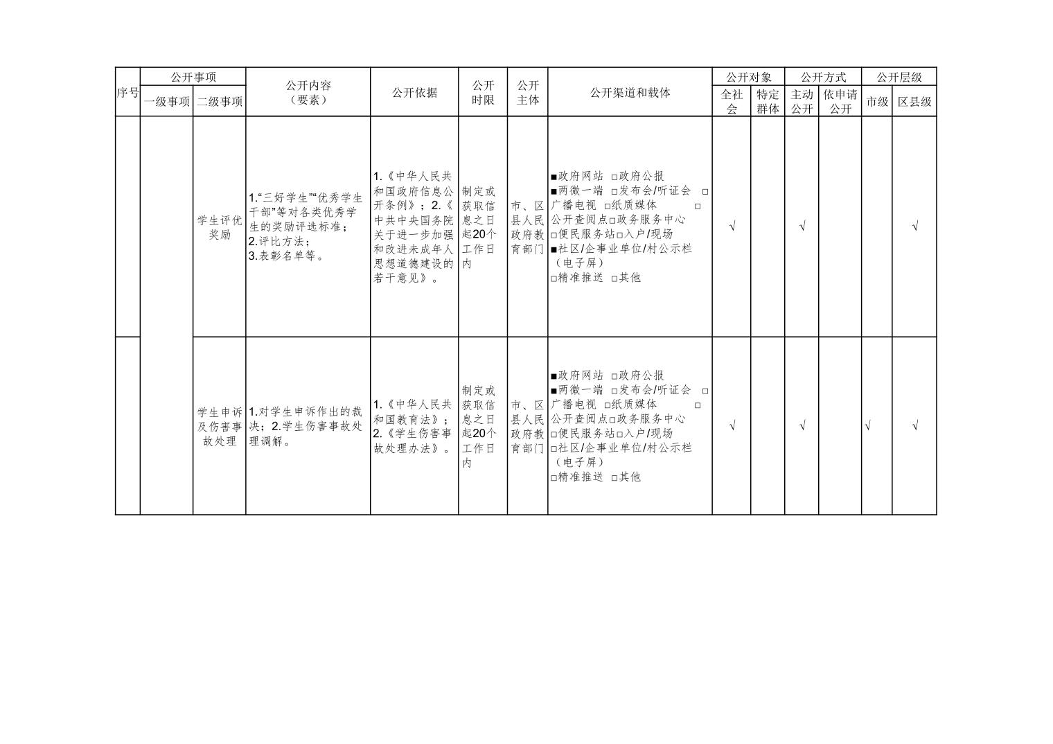 义务教育领域基层政务公开标准目录(2024年修订版)