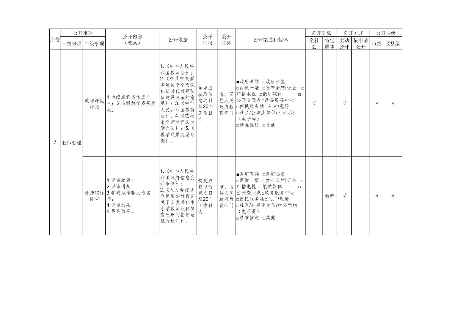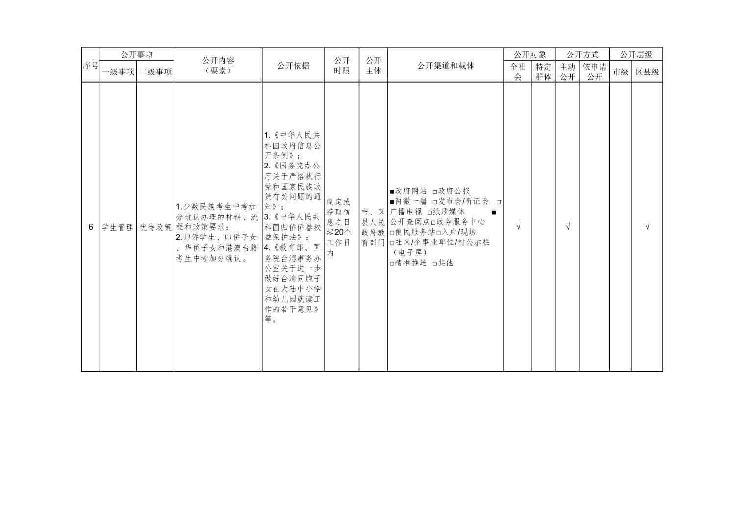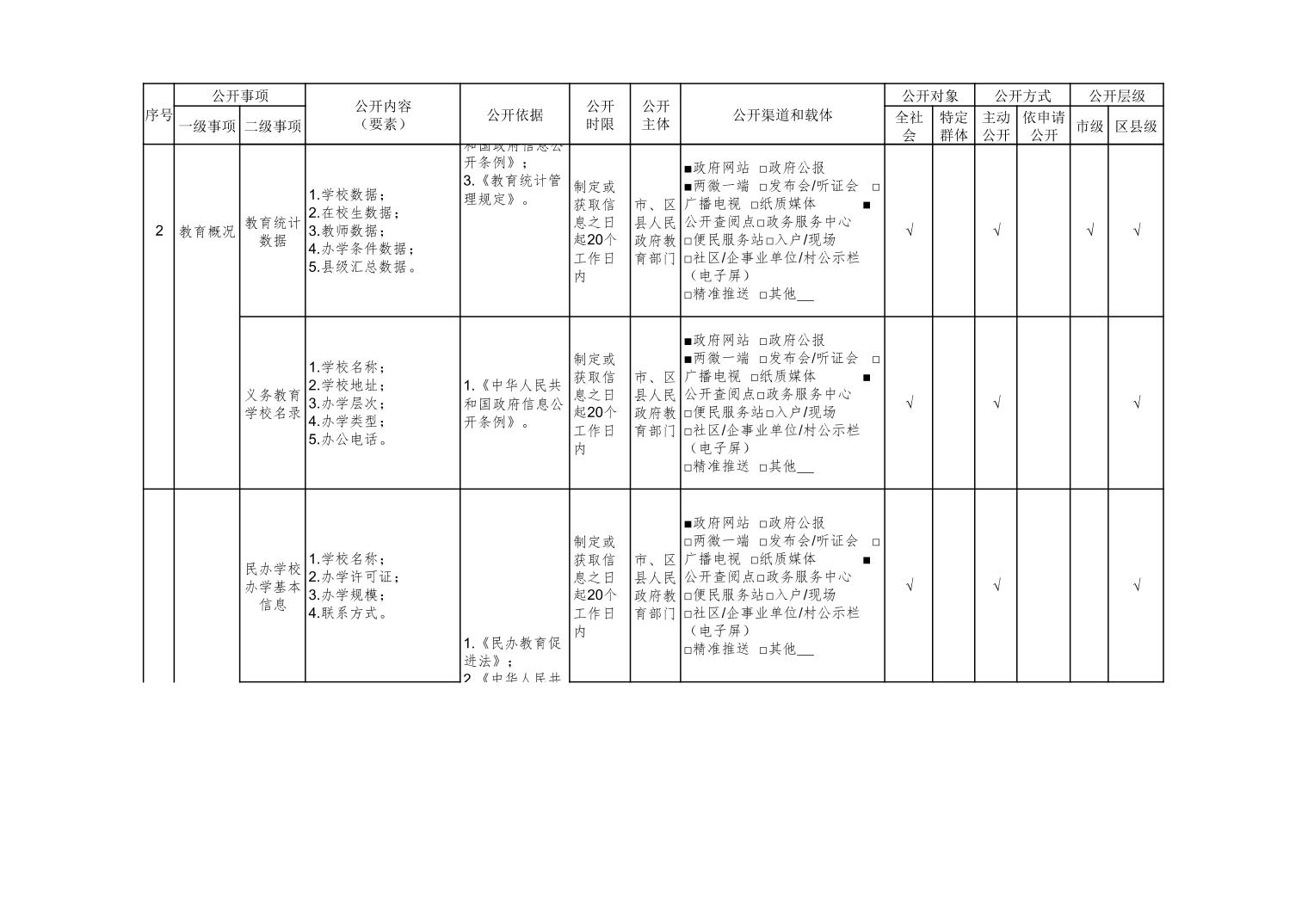 义务教育领域基层政务公开标准目录(2025年修订版)