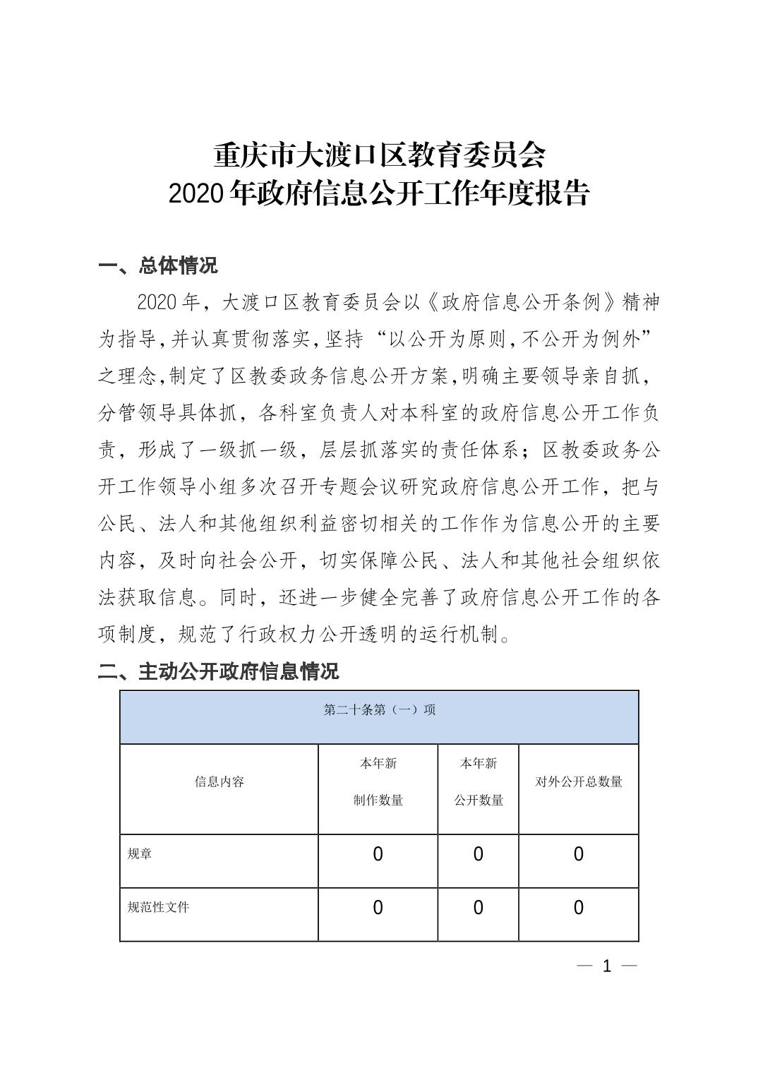 重庆市大渡口区教育委员会2020年政府信息公开工作年度报告.pdf