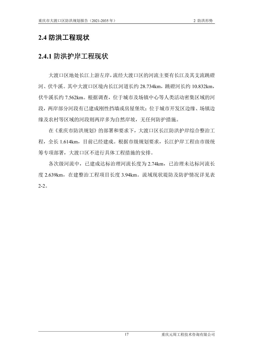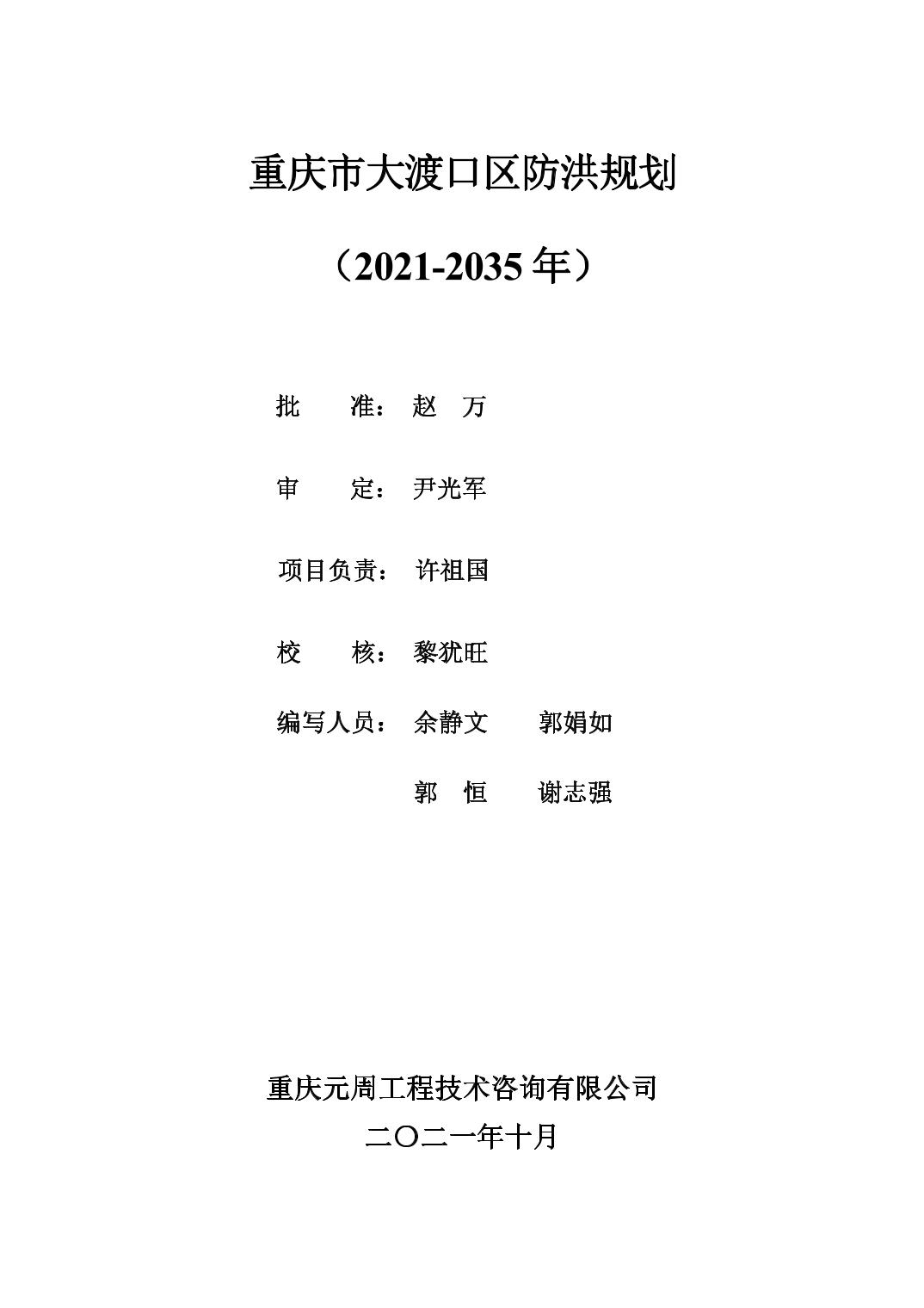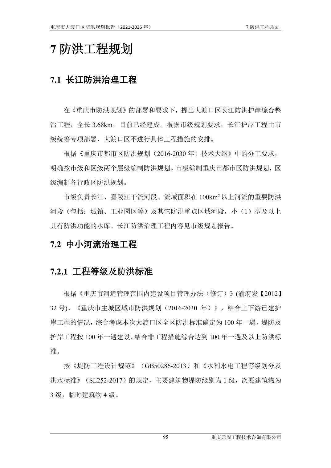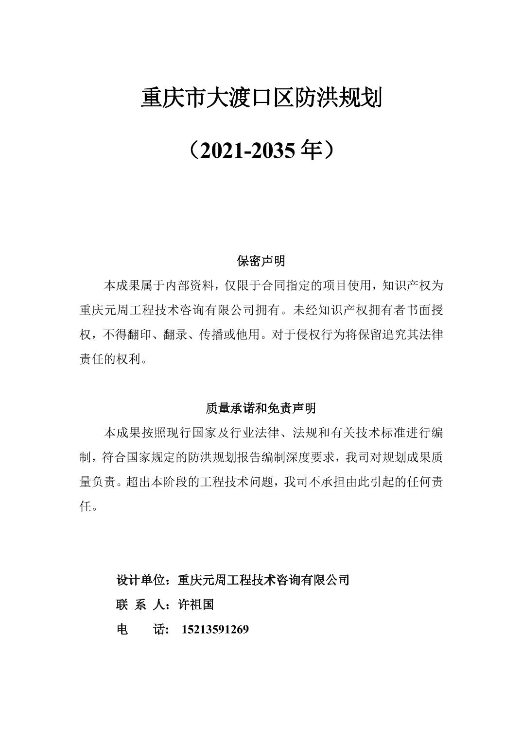 重庆市大渡口区防洪规划(2021-2035年)