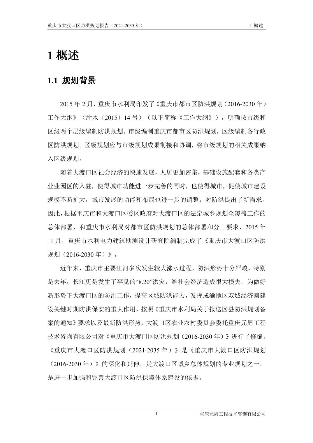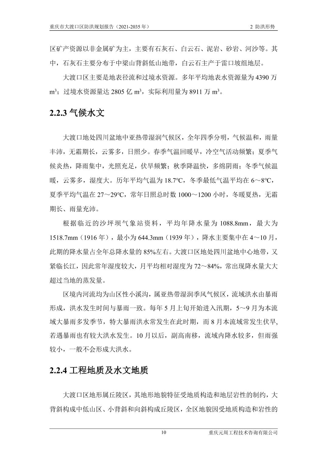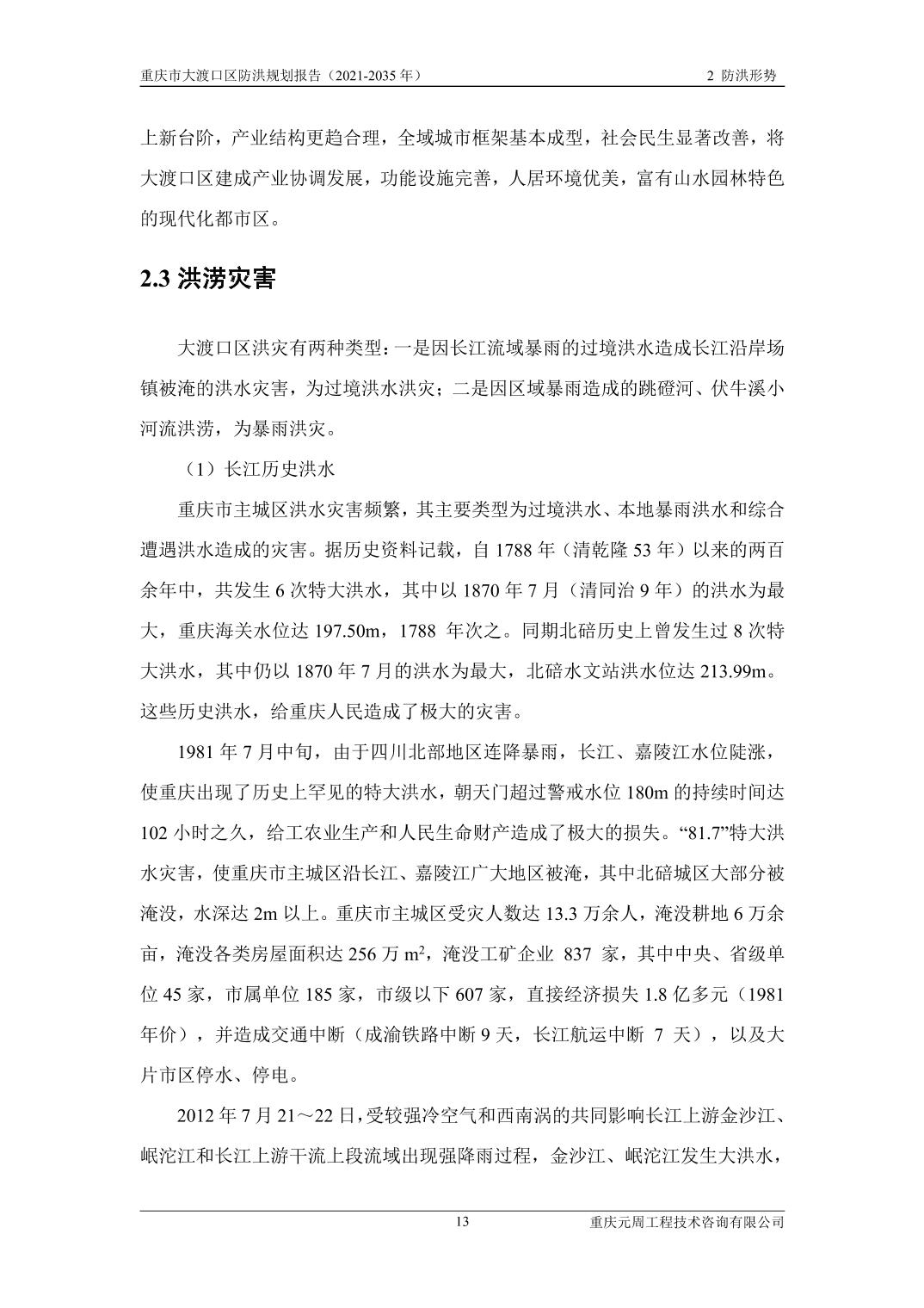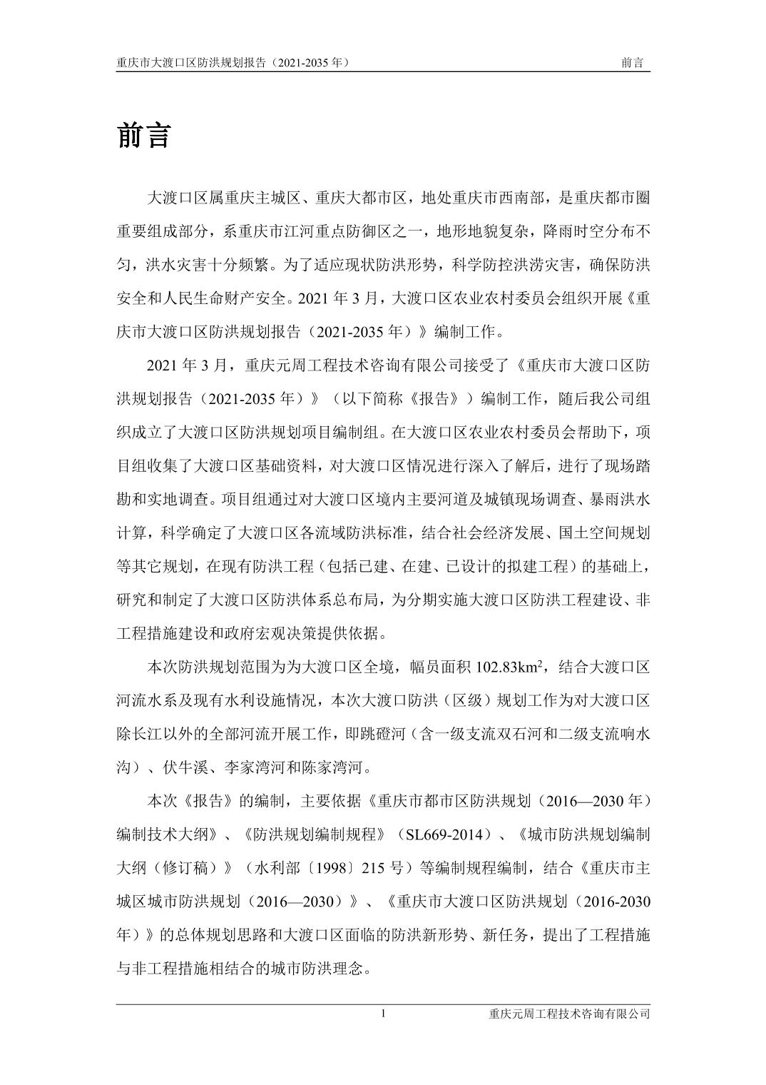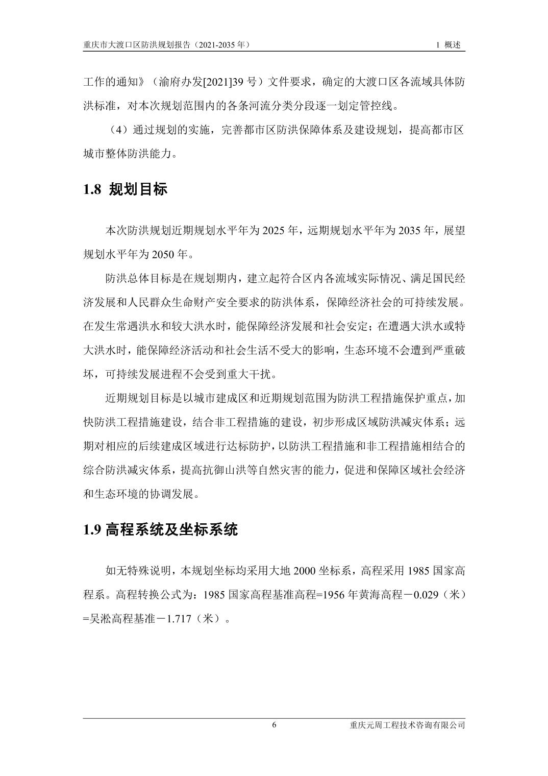 重庆市大渡口区防洪规划(2021-2035年)
