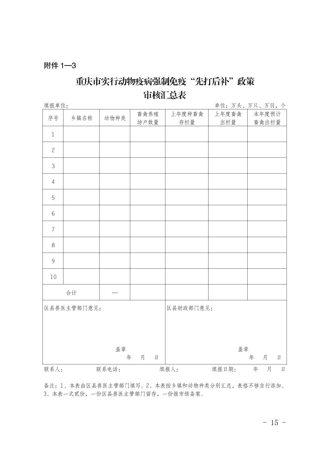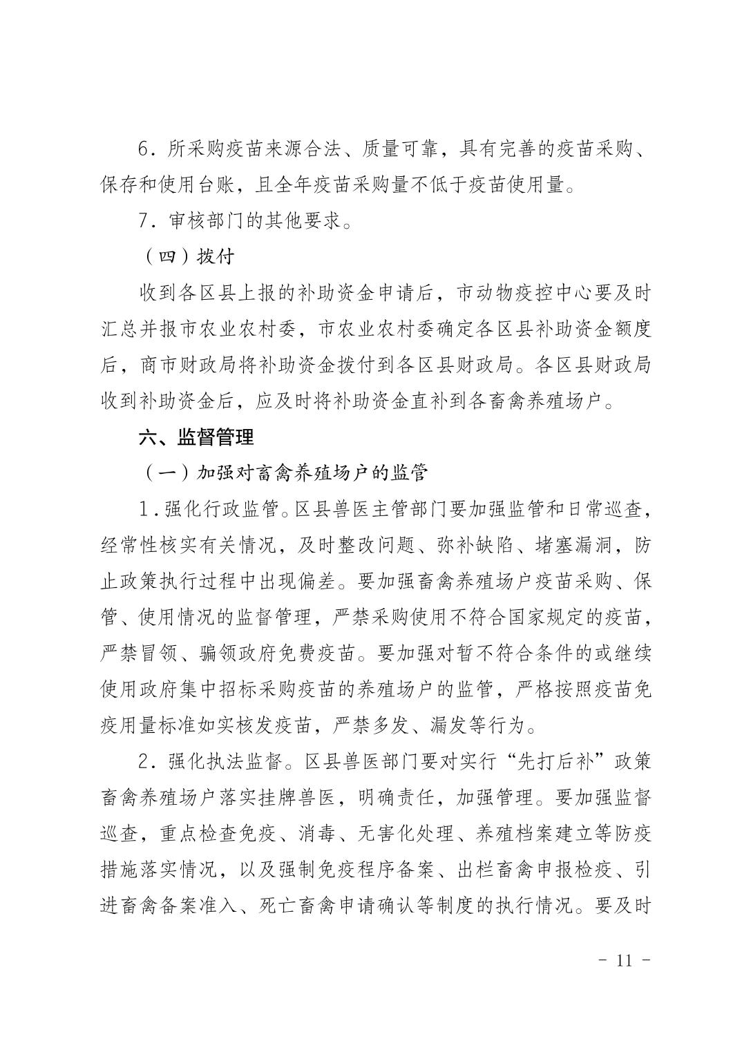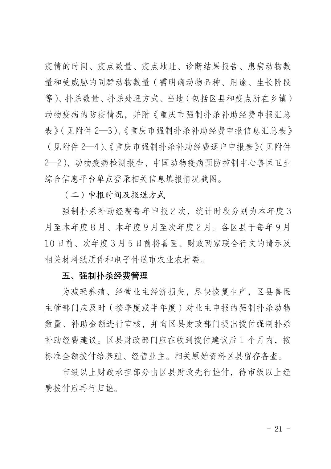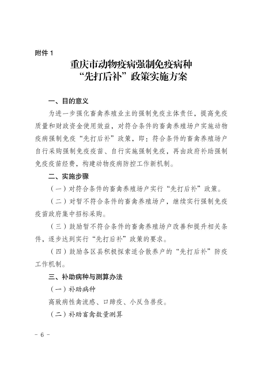 重庆市农业农村委员会 重庆市财政局关于调整完善动物疫病防控支持政策的通知