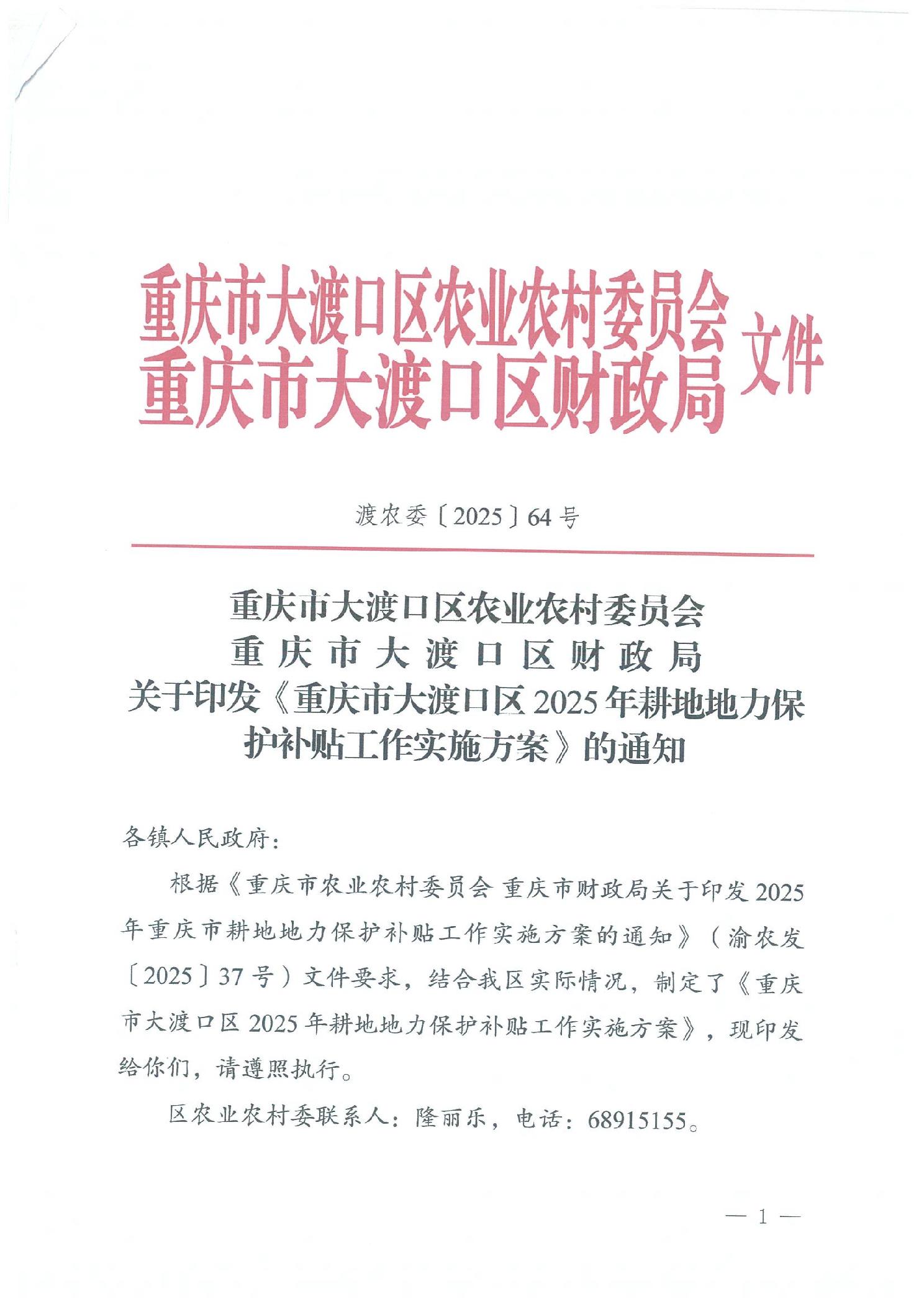 重庆市大渡口区2025年耕地地力保护补贴工作实施方案