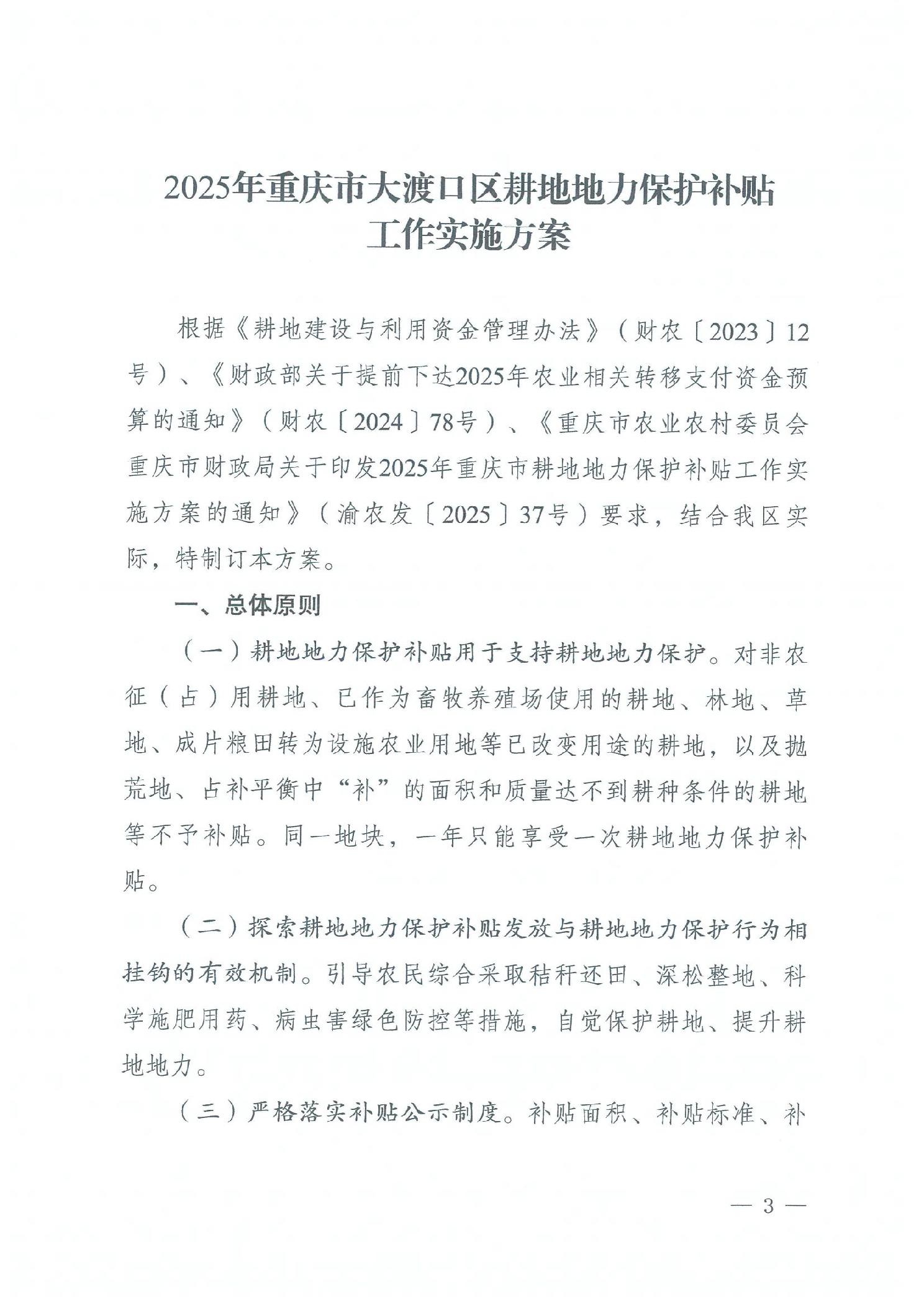 关于印发《重庆市大渡口区2025年耕地地力保护补贴工作实施方案》的通知