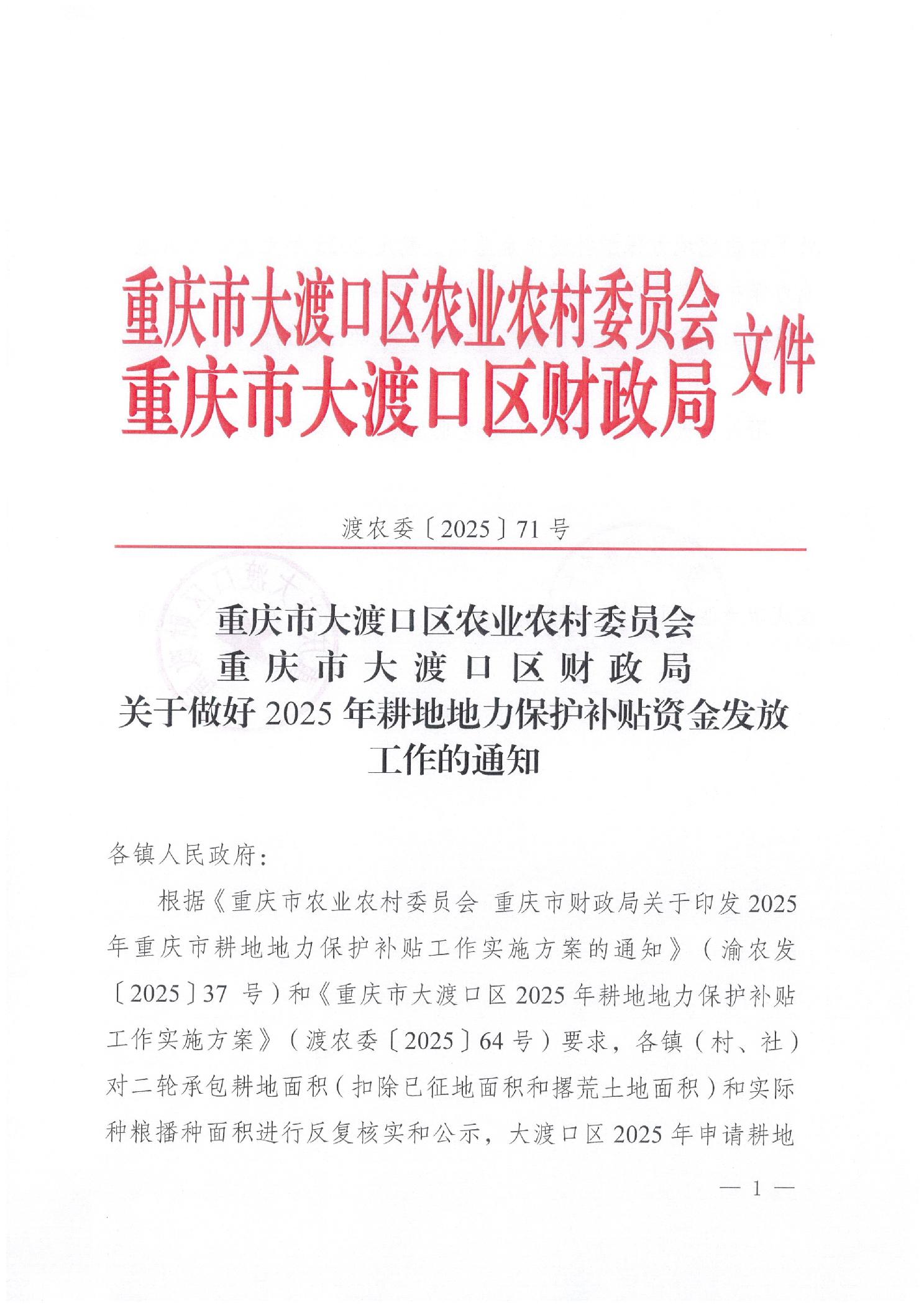 关于做好2025年耕地地力保护补贴资金发放工作的通知