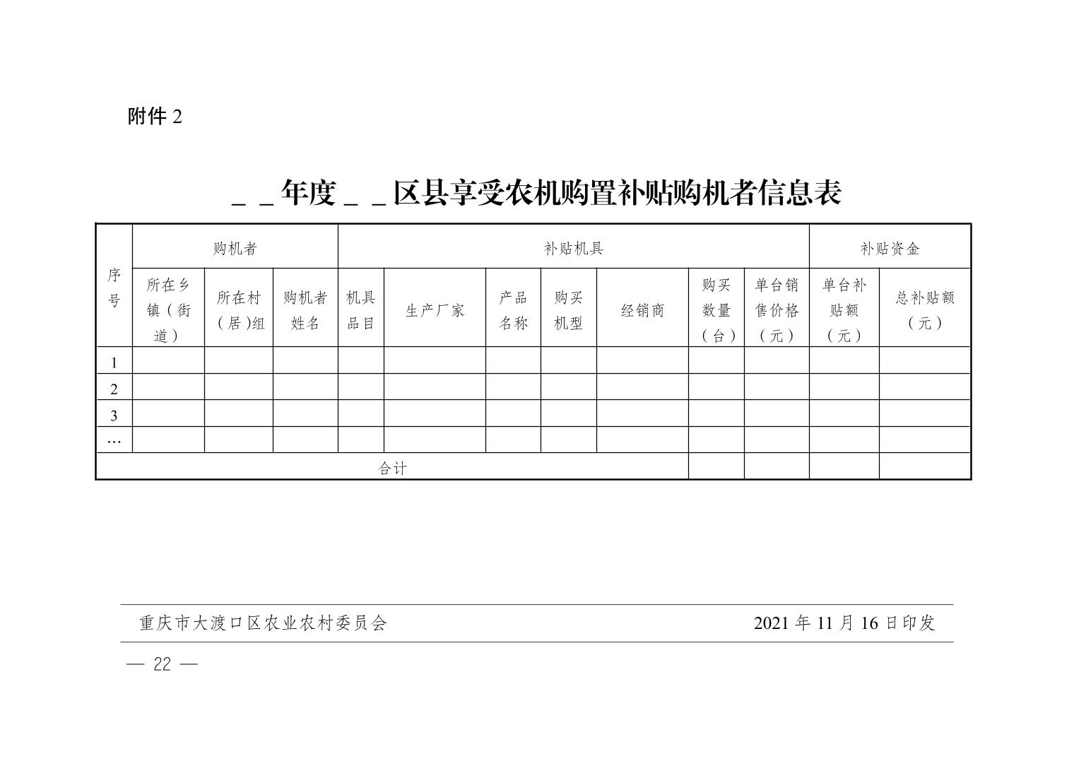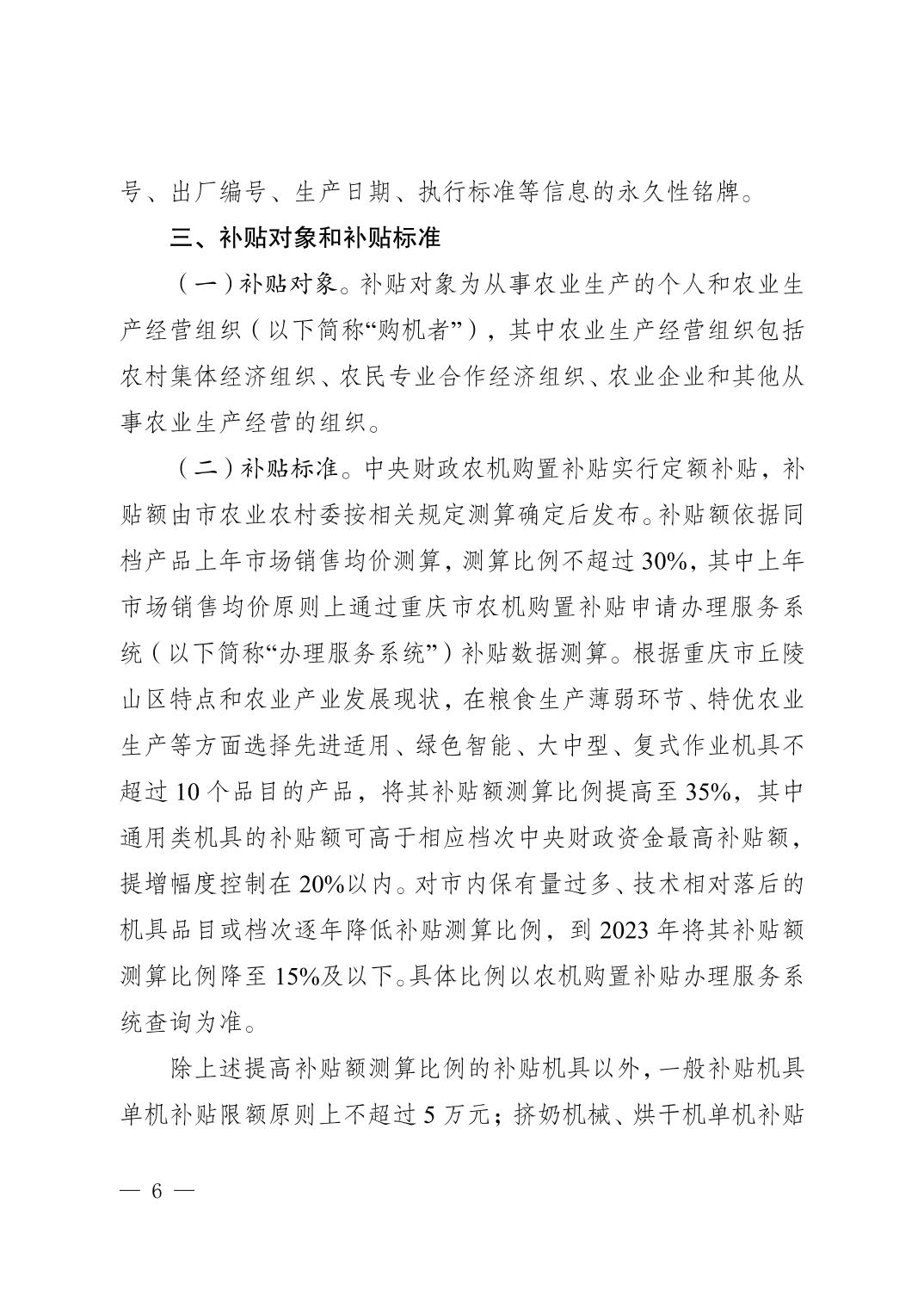 重庆市大渡口区农业农村委员会 重庆市大渡口区财政局关于印发大渡口区2021—2023年农机购置补贴实施方案的通知(2022年版)