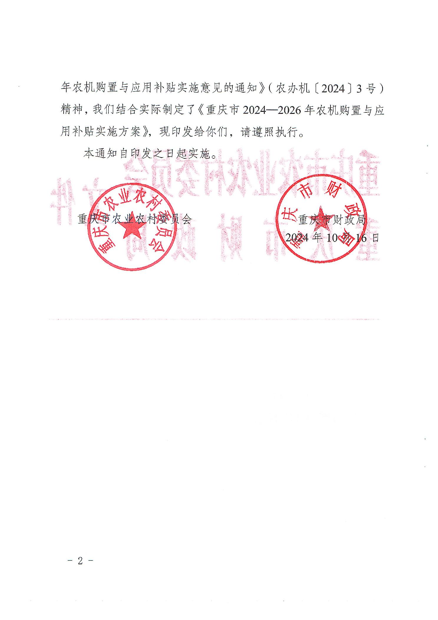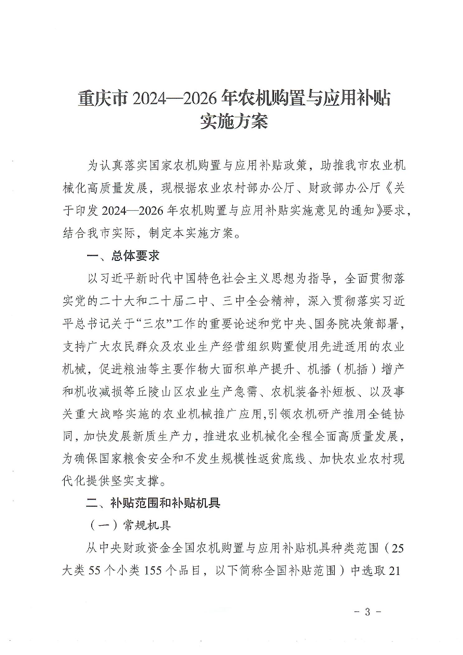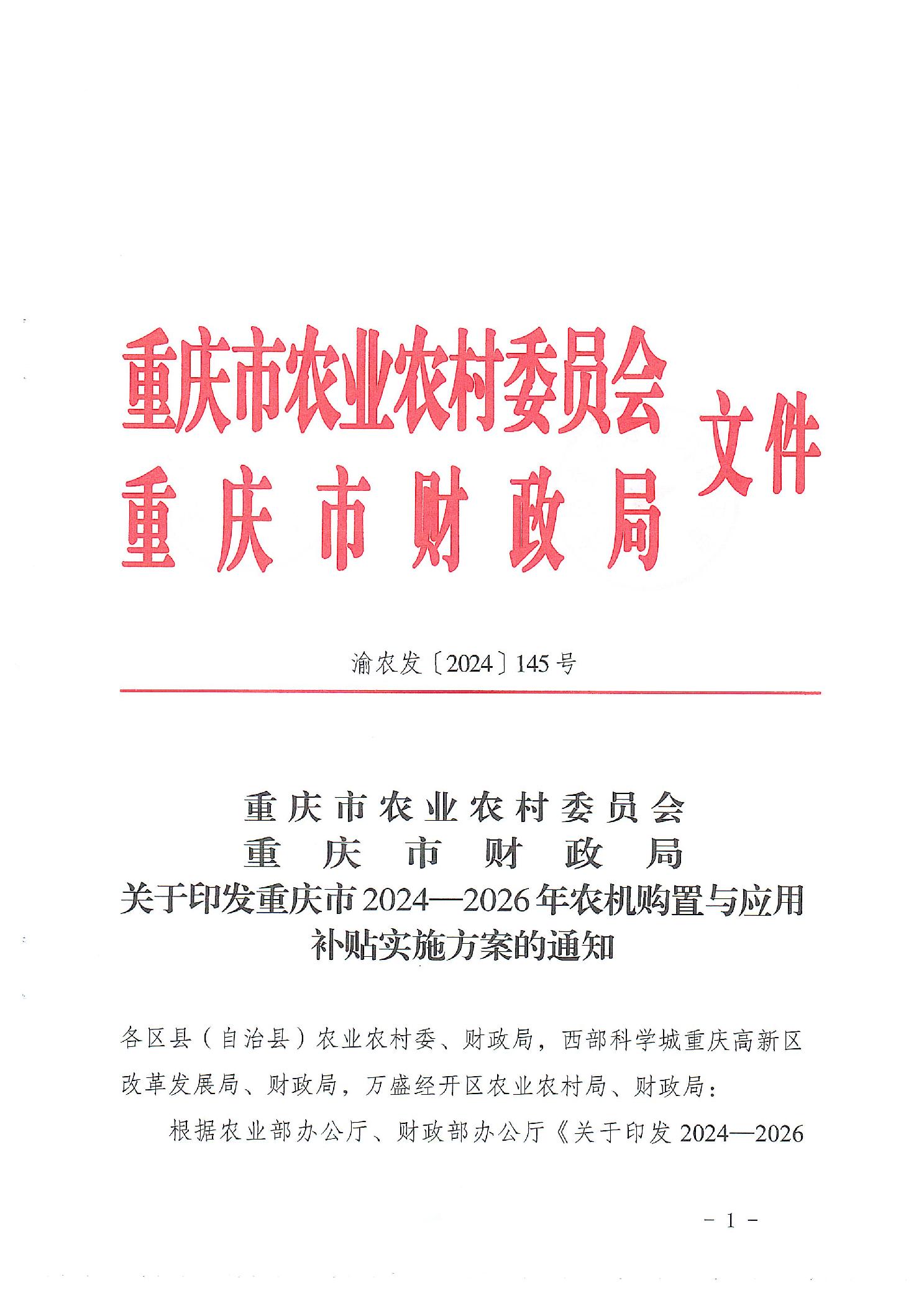 关于印发重庆市2024—2026年农机购置与应用补贴实施方案的通知