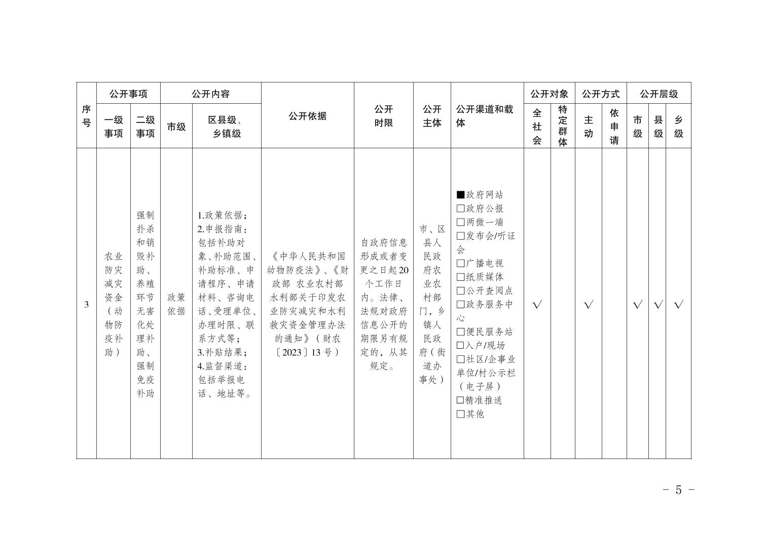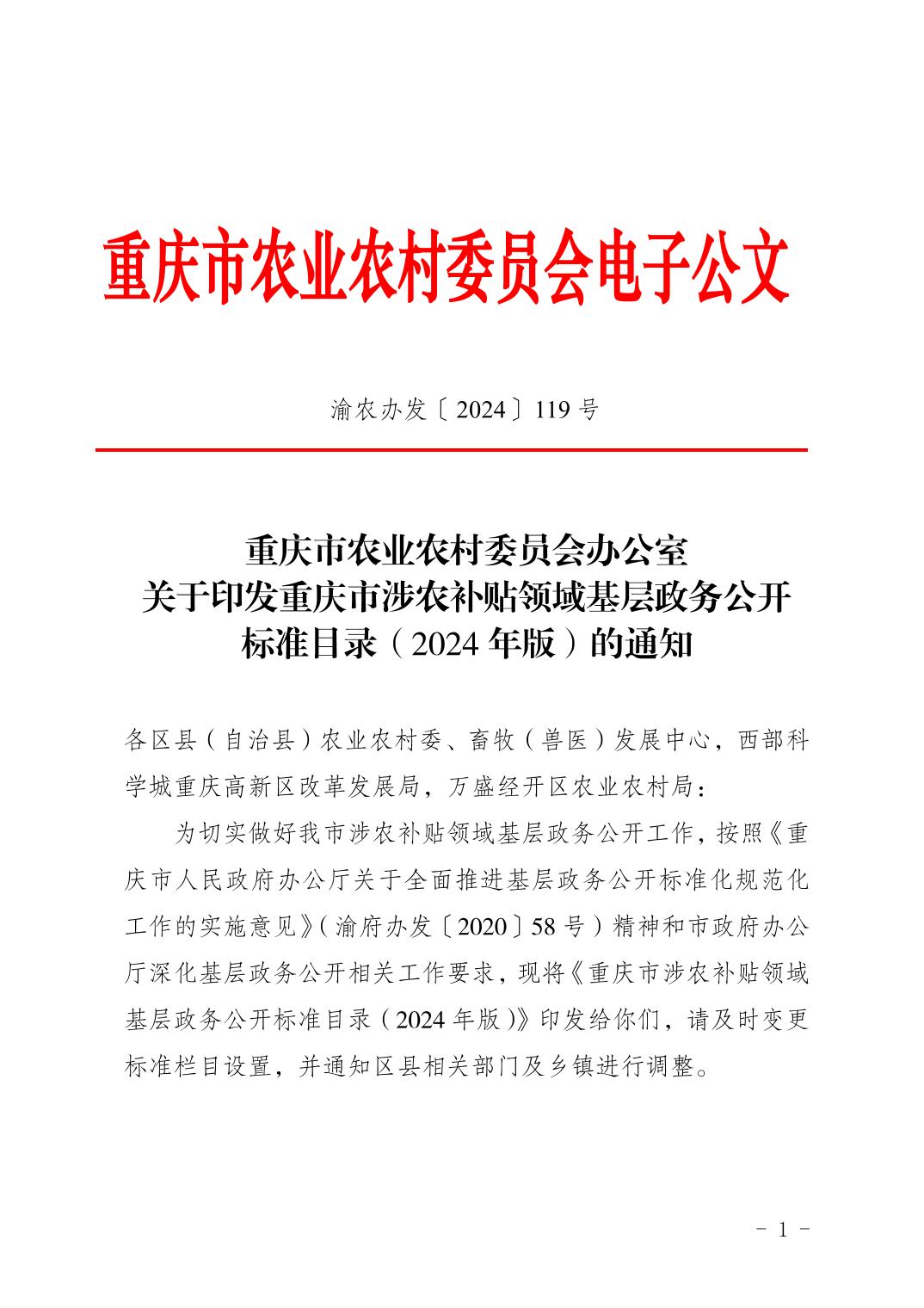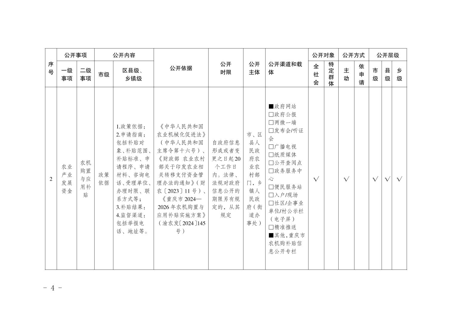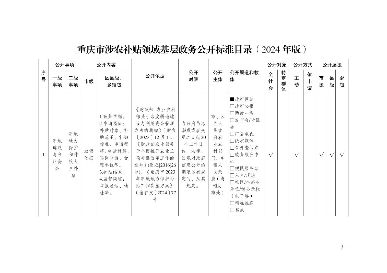 重庆市涉农补贴领域基层政务公开标准目录(2024年版)