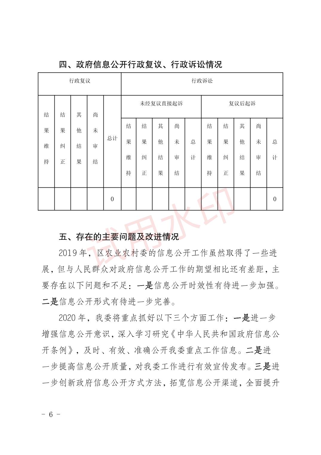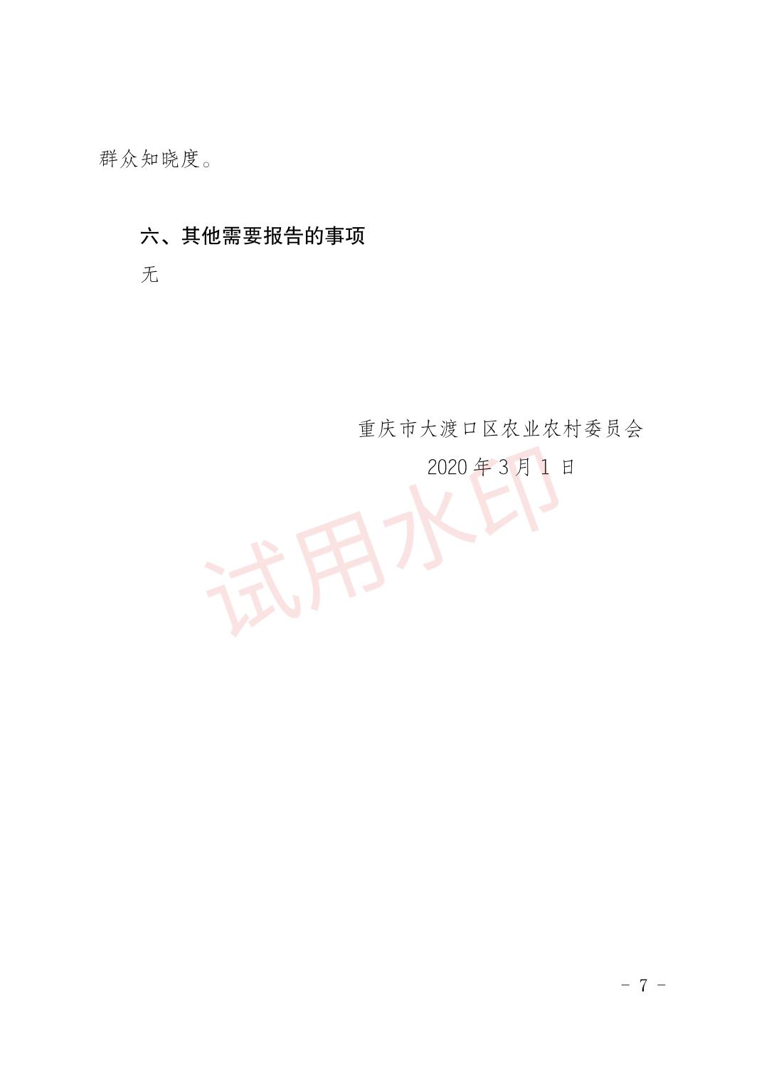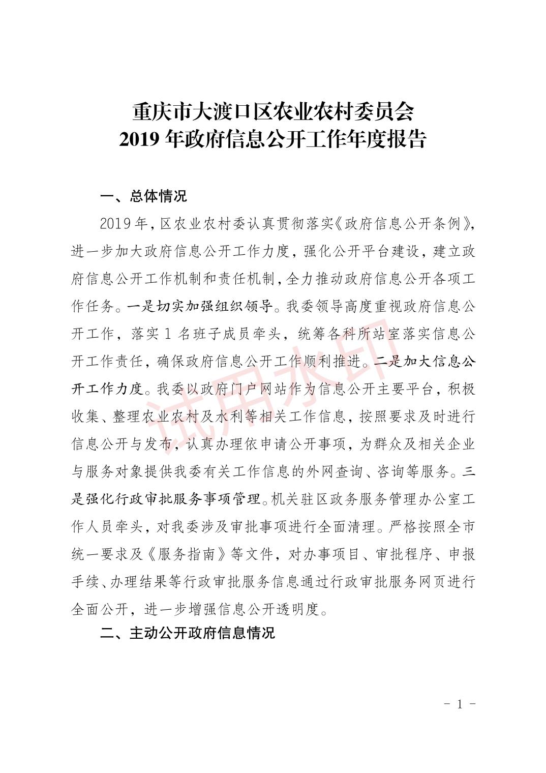 重庆市大渡口区农业农村委员会2019年政府信息公开工作年度报告