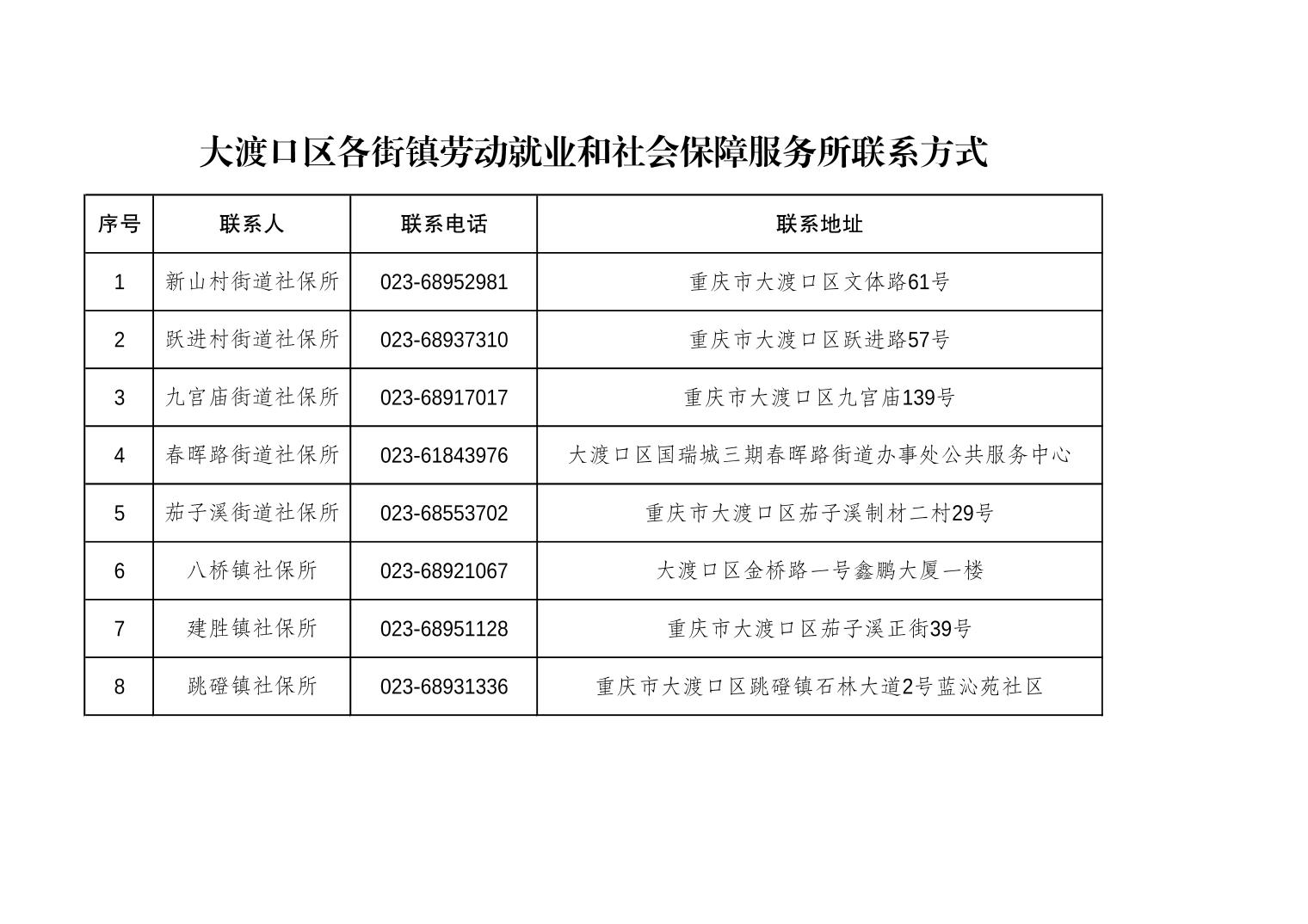 大渡口区各街镇劳动就业和社会保障服务所联系方式.pdf