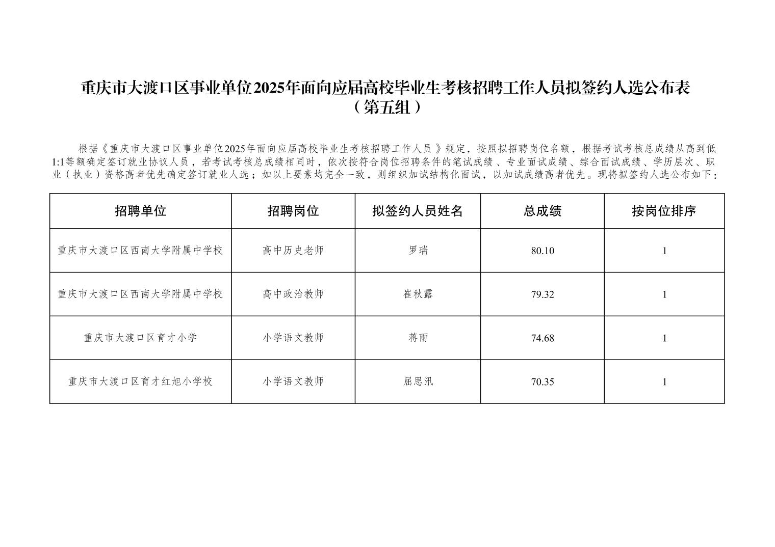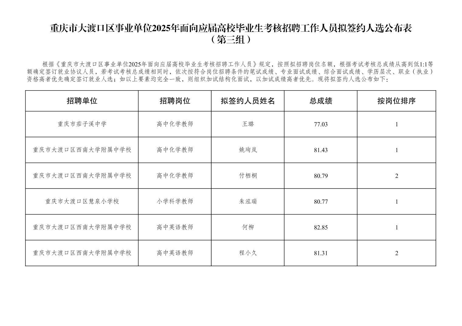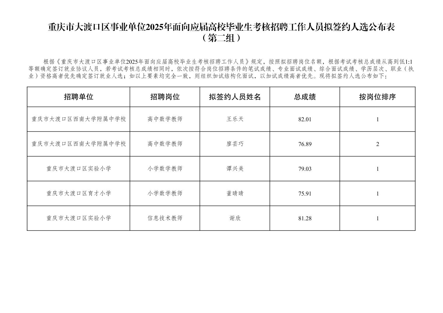 重庆市大渡口区事业单位2025年面向应届高校毕业生考核招聘工作人员拟签约人选公布表