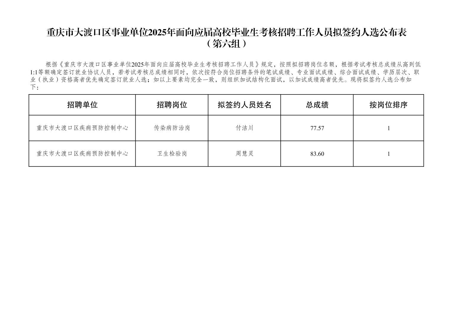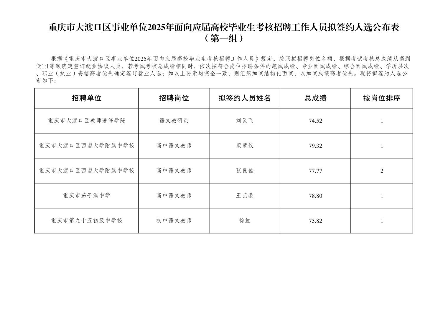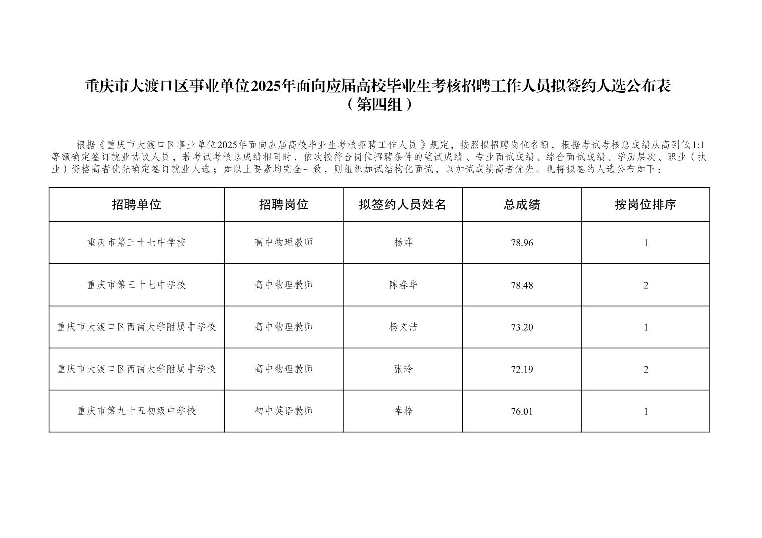 重庆市大渡口区事业单位2025年面向应届高校毕业生考核招聘工作人员拟签约人选公布表