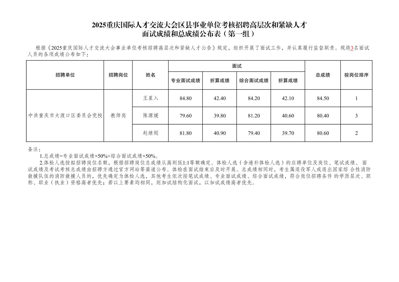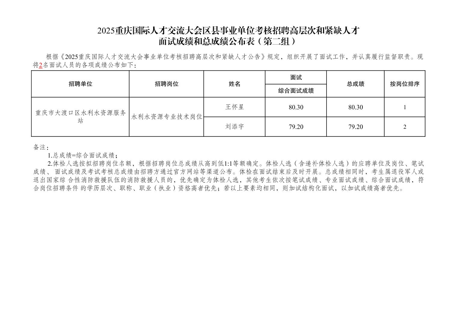2025重庆国际人才交流大会区县事业单位考核招聘高层次和紧缺人才面试和总成绩公布表