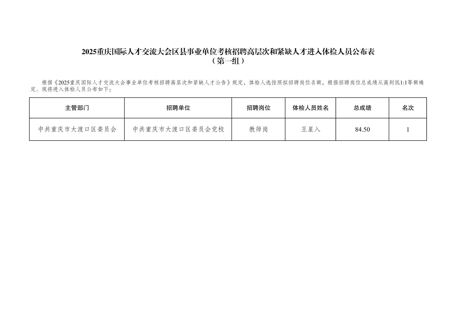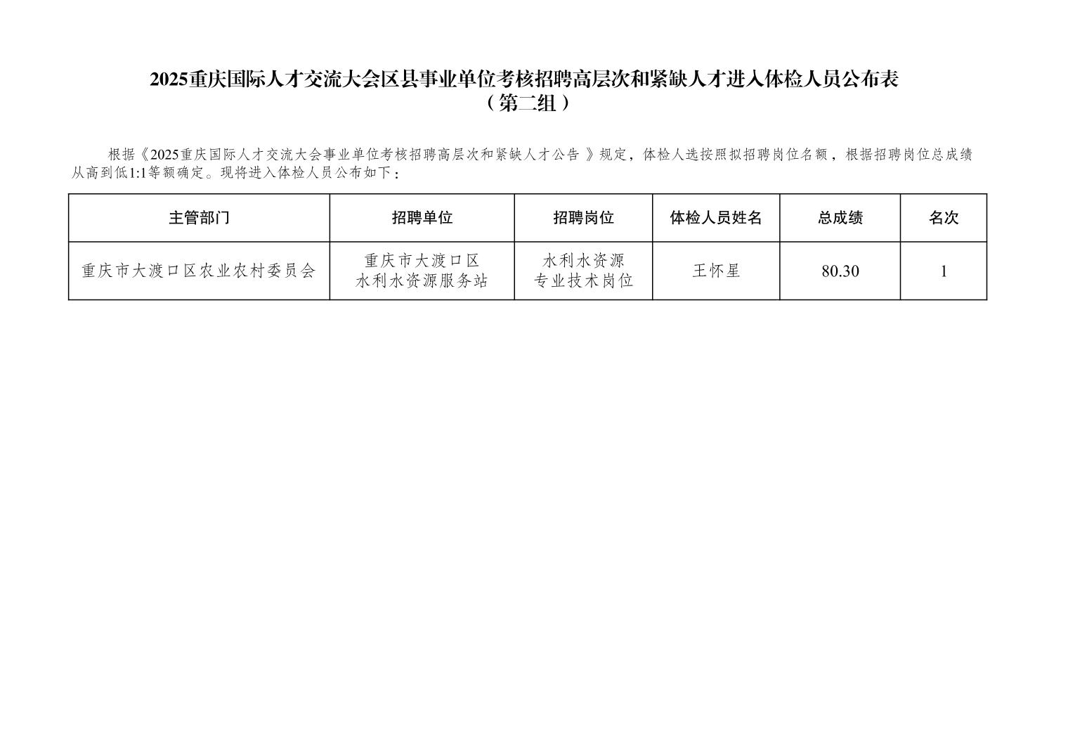 2025重庆国际人才交流大会区县事业单位考核招聘高层次和紧缺人才进入体检人员公布表