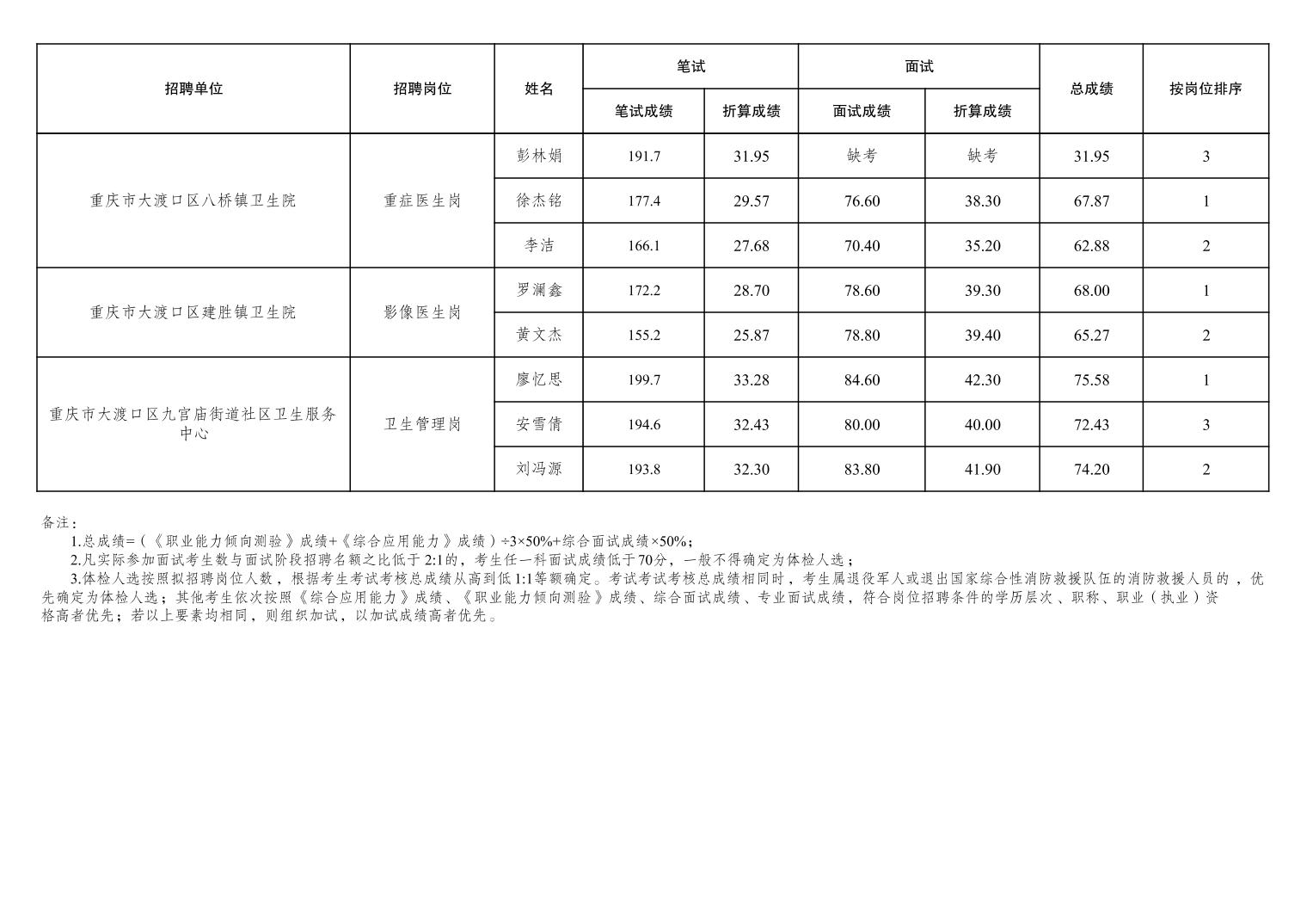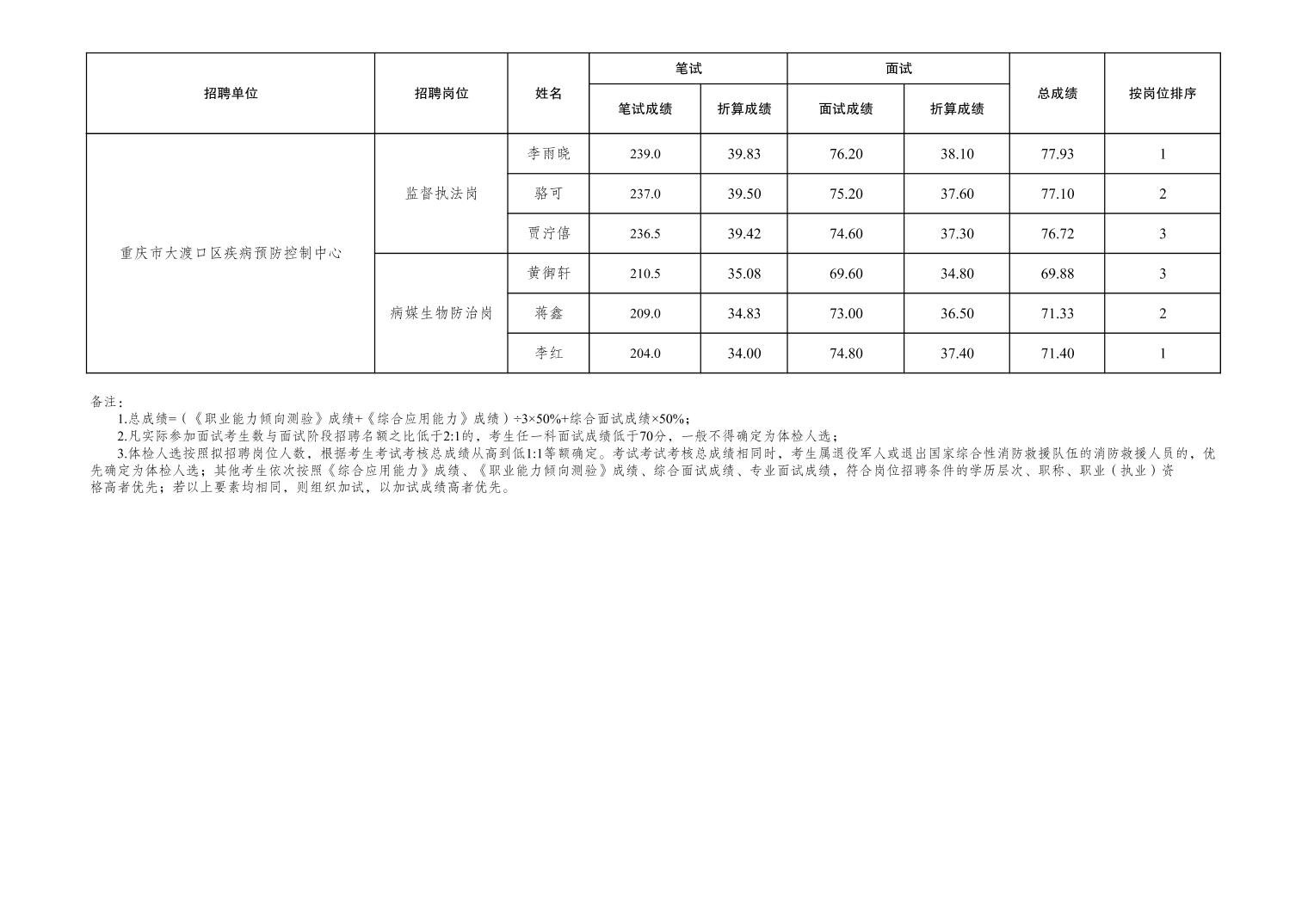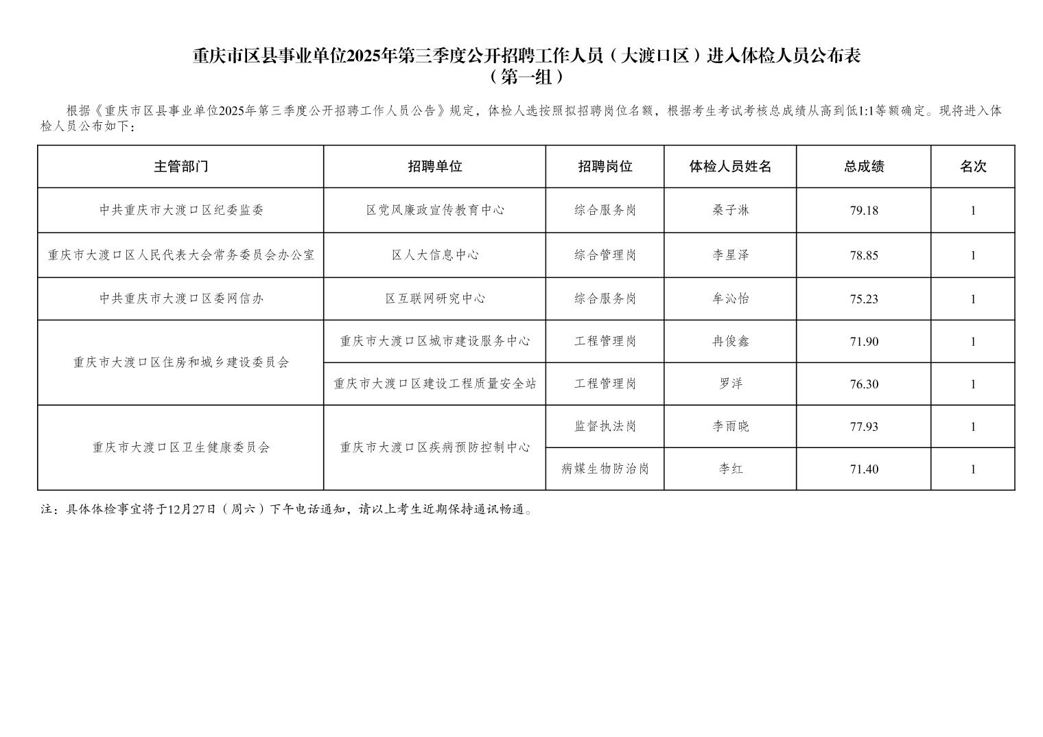 重庆市区县事业单位2025年第三季度公开招聘工作人员(大渡口区)笔试、面试和总成绩公布表