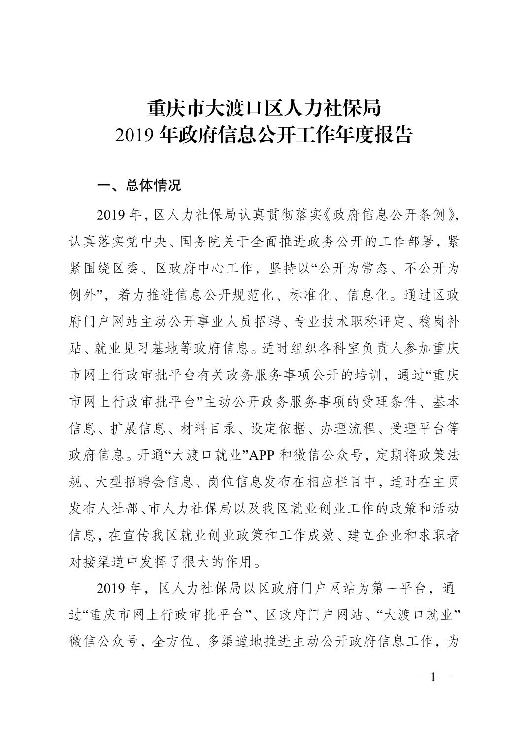 大渡口区人力资源和社会保障局2019年政府信息公开工作年度报告.pdf