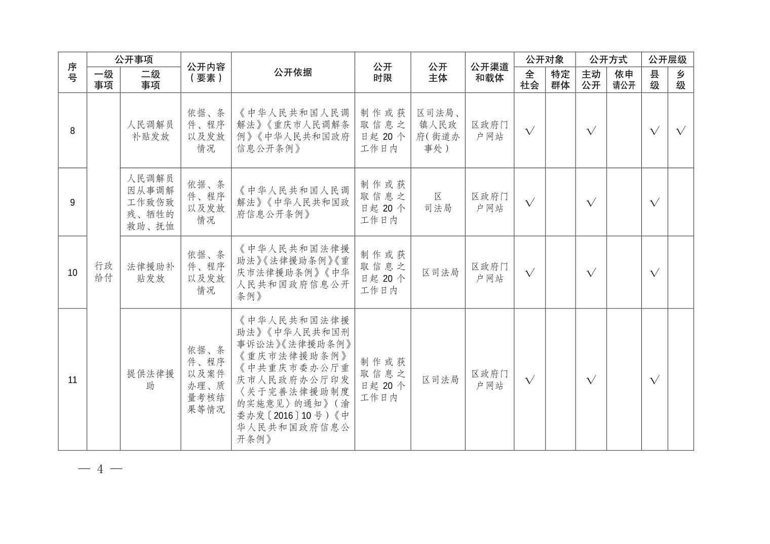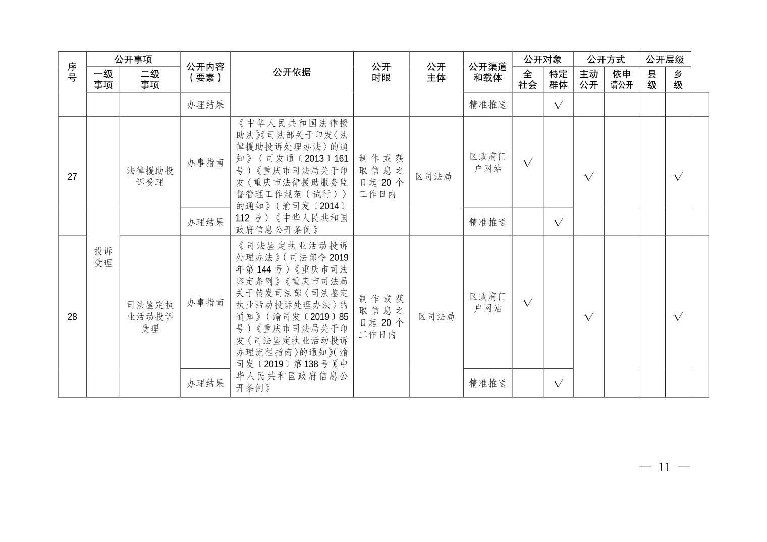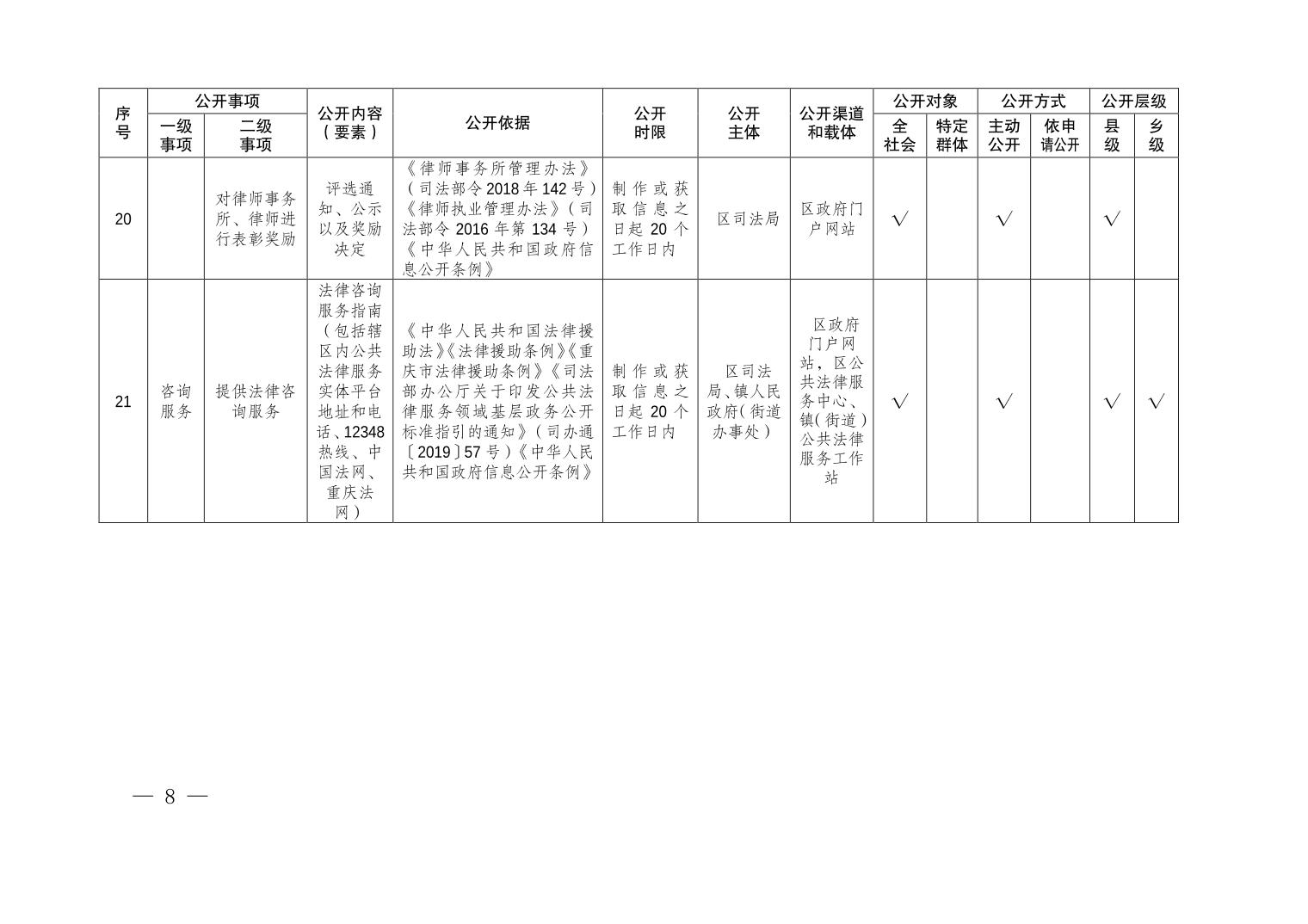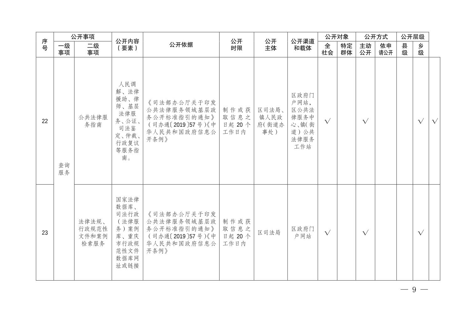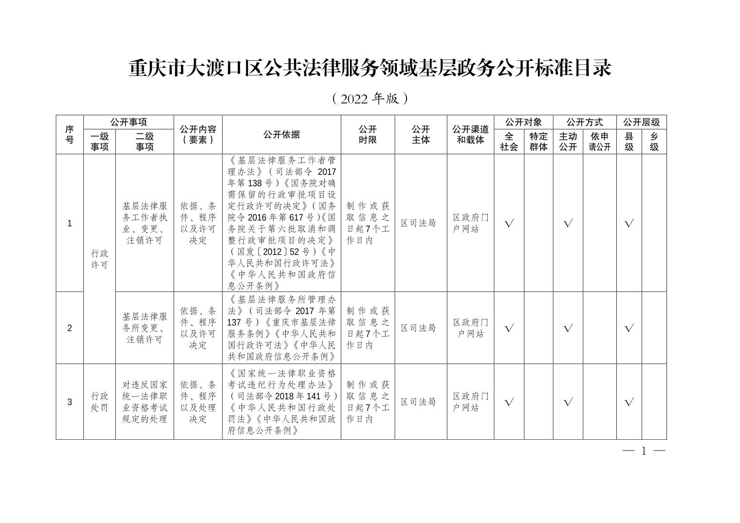 重庆市大渡口区公共法律服务领域基层政务公开标准目录(2022年版)