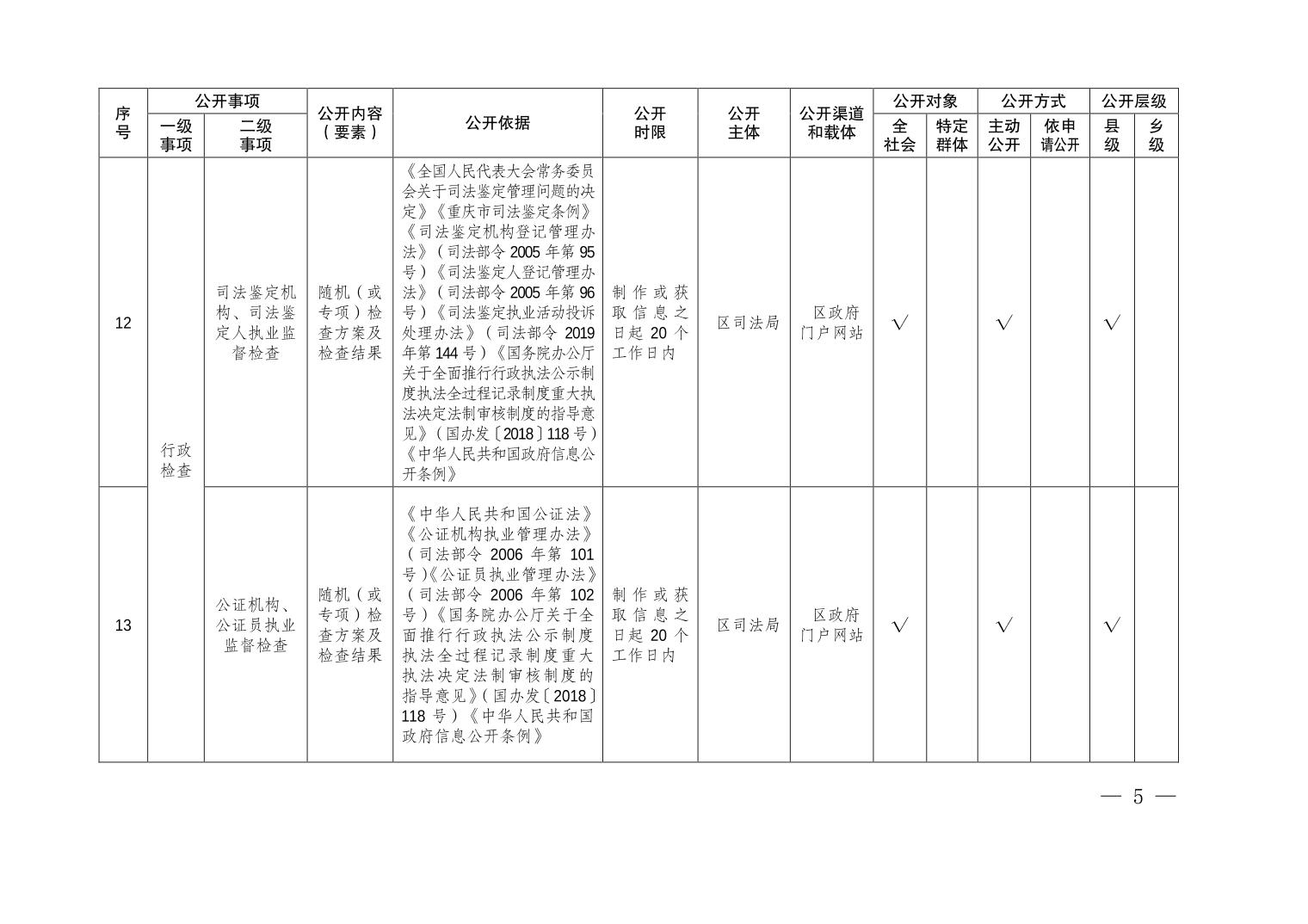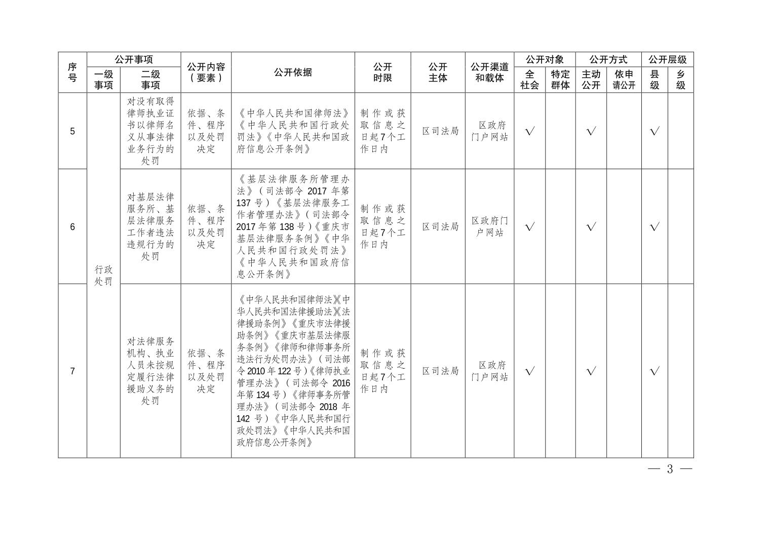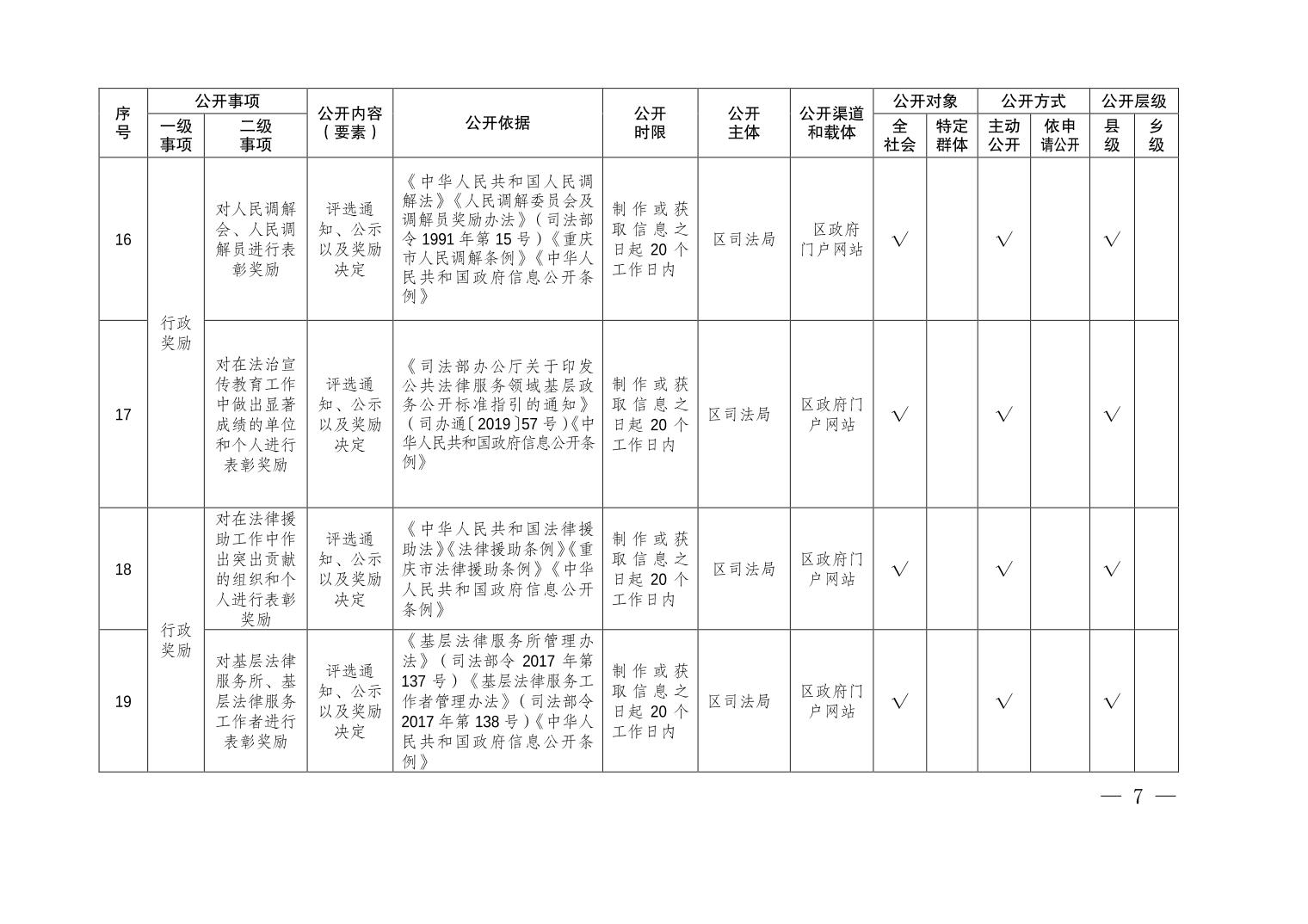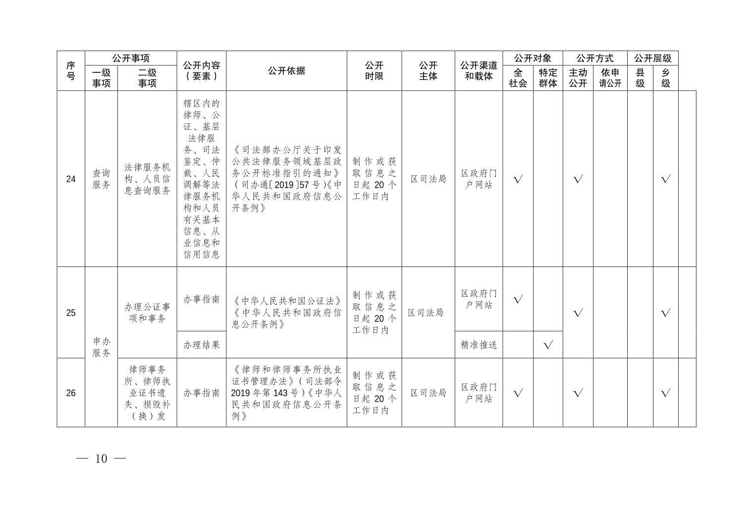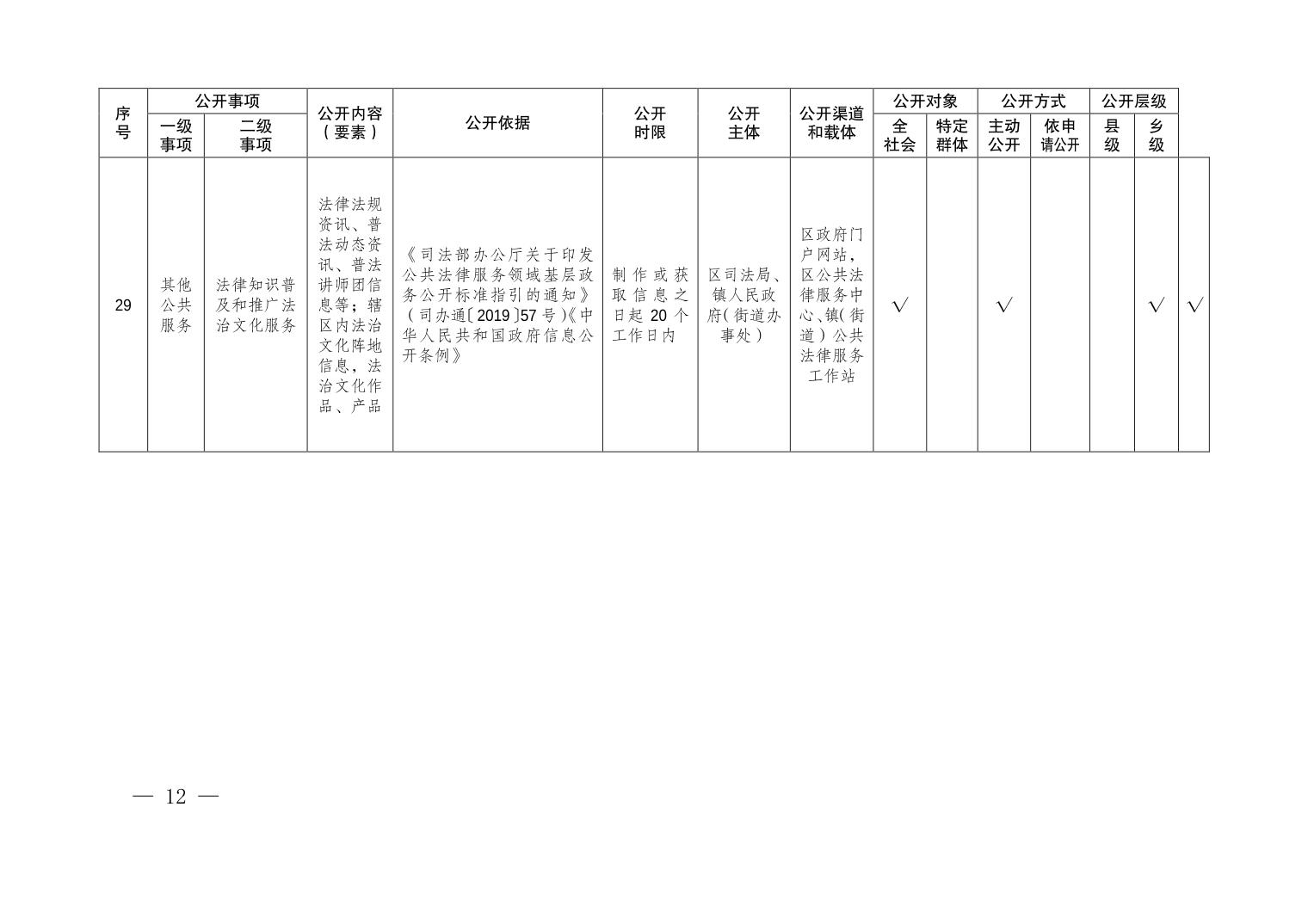 重庆市大渡口区公共法律服务领域基层政务公开标准目录(2022年版)