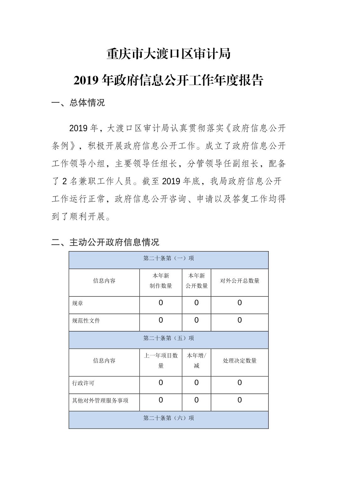 重庆市大渡口区审计局2019年政府信息公开工作年度报告.pdf