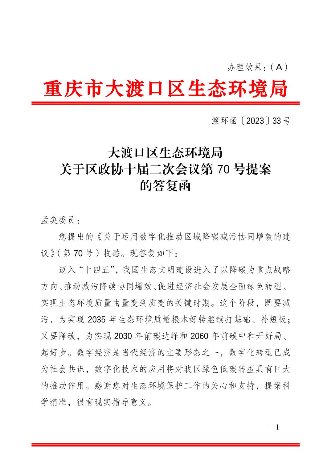 关于区政协十届二次会议第70号提案的答复函.pdf
