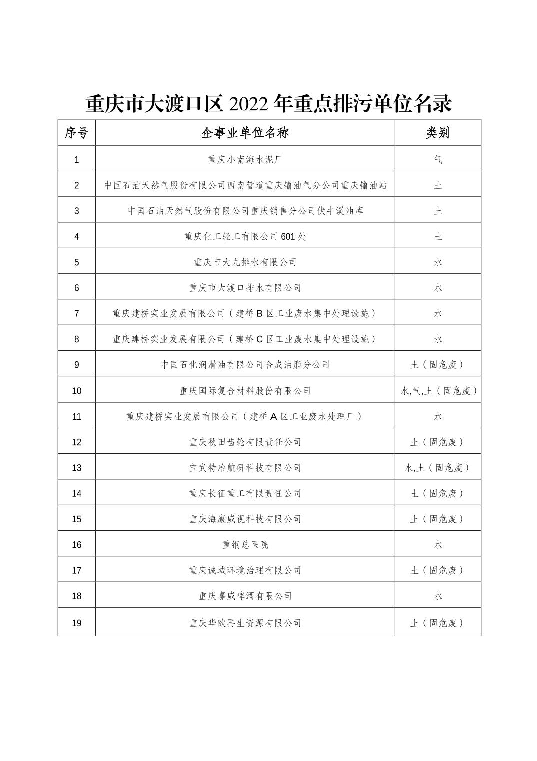 重庆市大渡口区2022年重点排污单位名录.doc