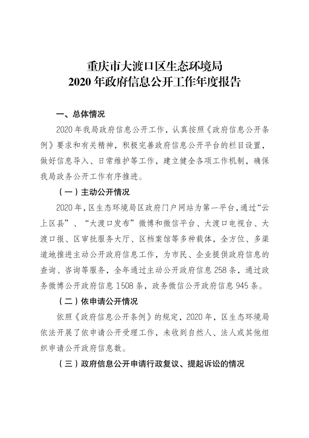 重庆市大渡口区生态环境局2020年政府信息公开工作年度报告.pdf