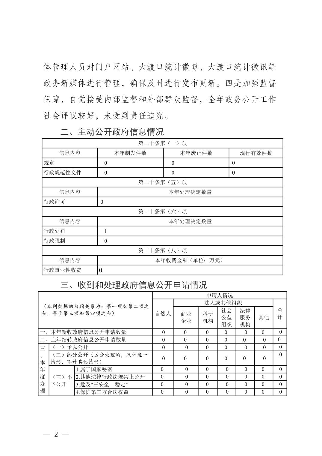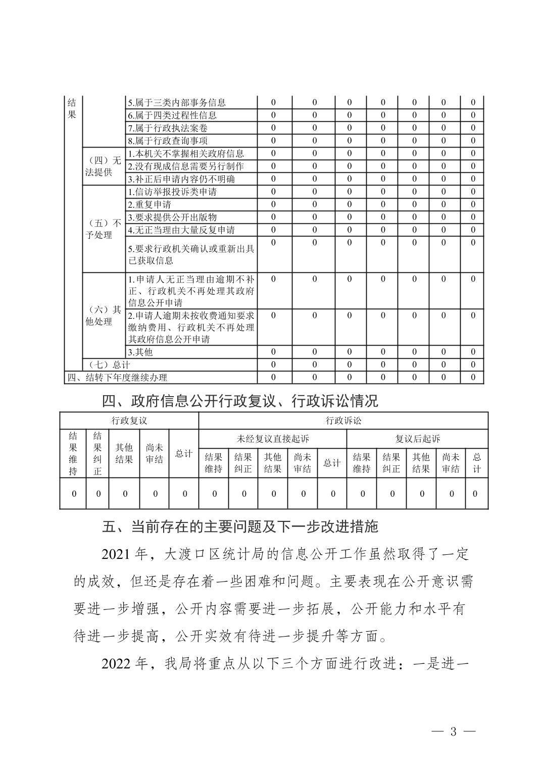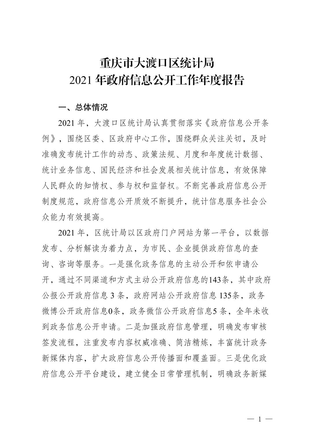 重庆市大渡口区统计局2021年政府信息公开工作年度报告