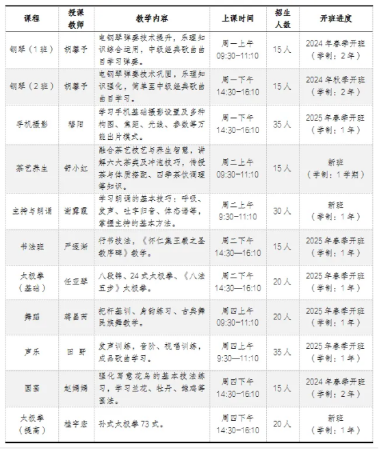 2.书法、舞蹈、国画、太极拳班学员需根据学科要求自行准备学具,穿着适宜教学活动的服饰。