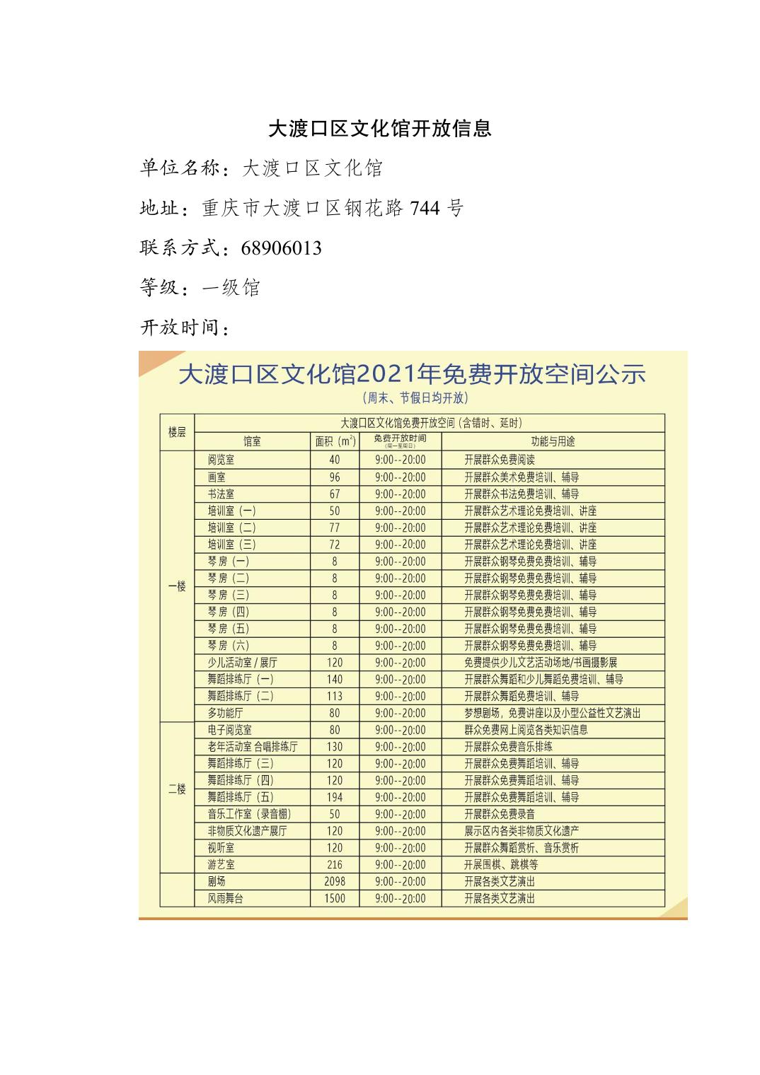 大渡口区文化馆开放信息.docx