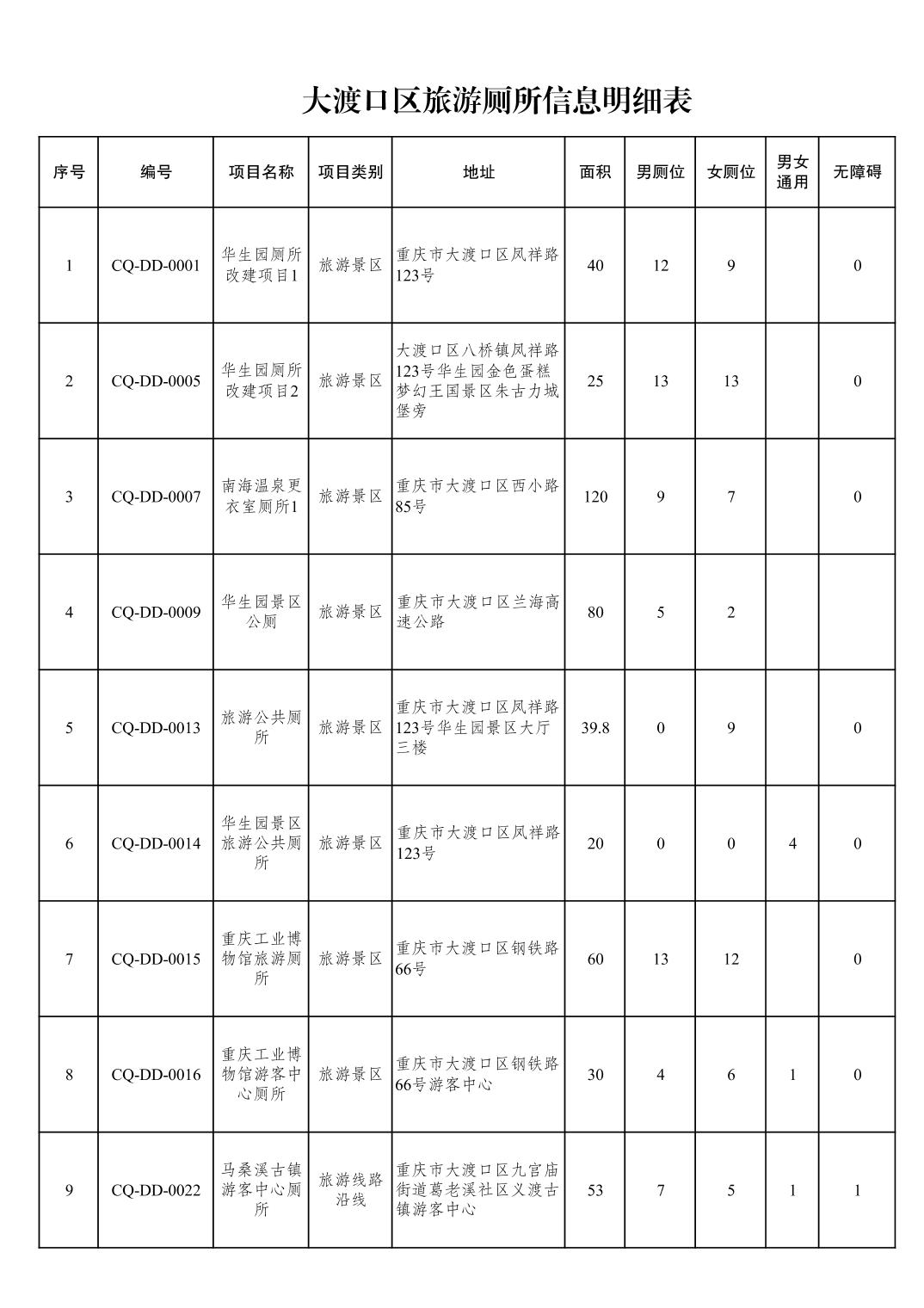 大渡口区旅游厕所信息明细表(2025年).pdf