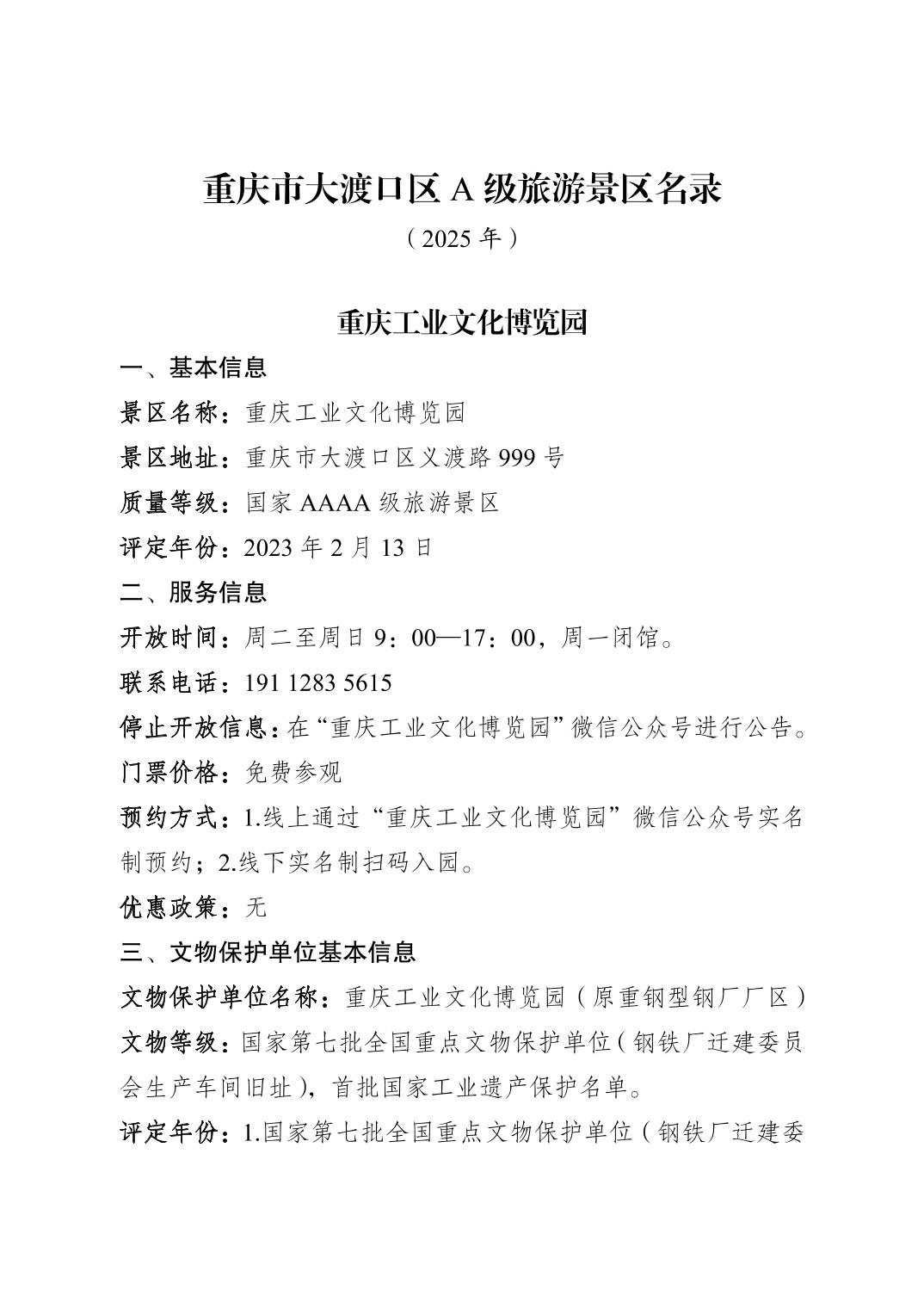 重庆市大渡口区A级旅游景区名录(2025年).pdf
