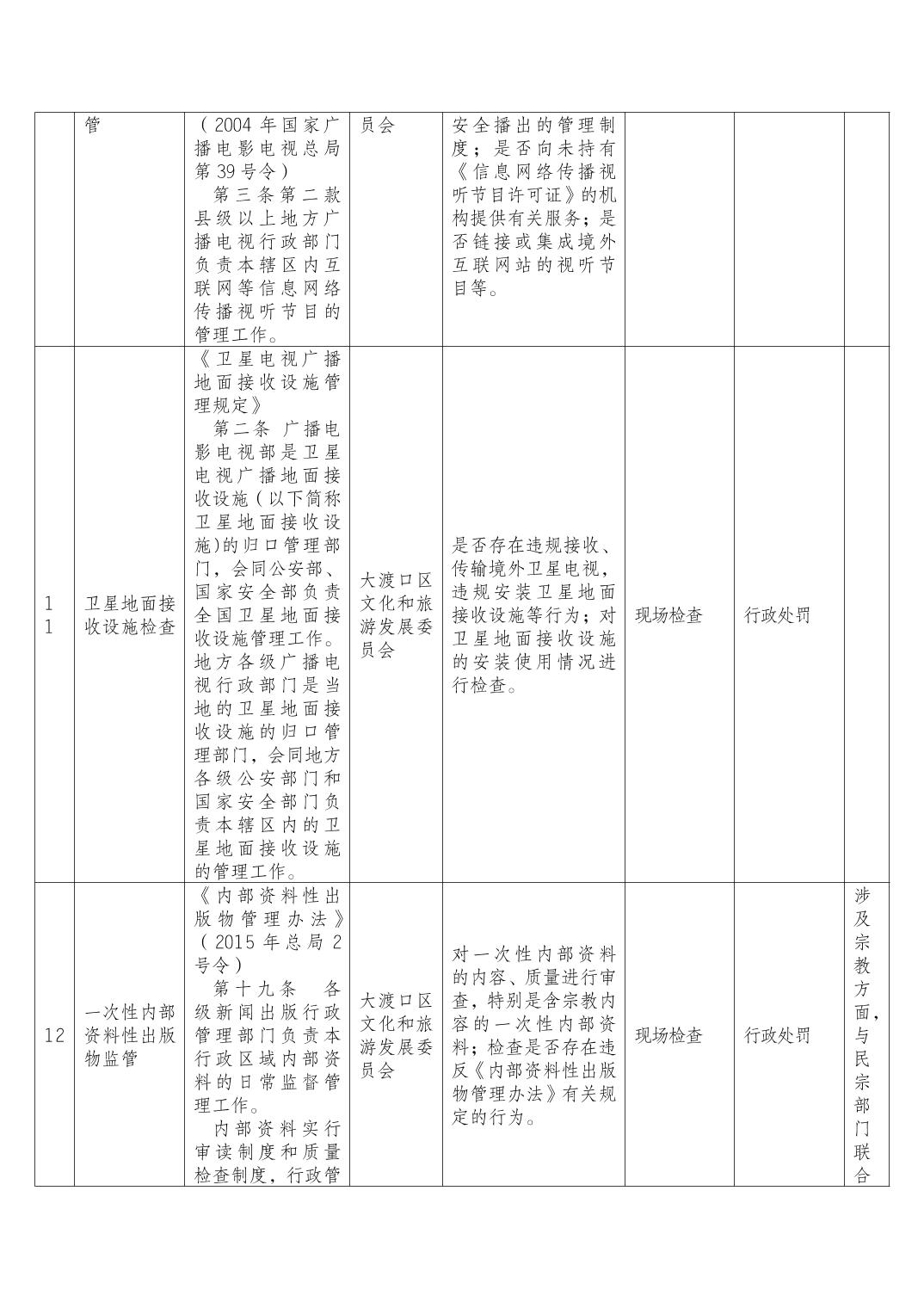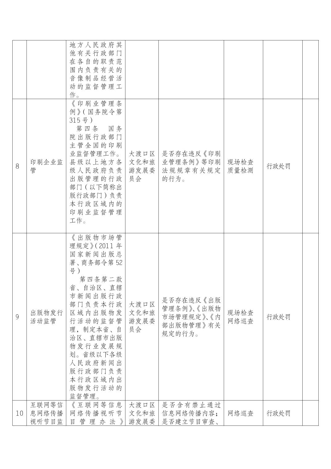 重庆市大渡口区文化和旅游发展委员会随机抽查事项清单.pdf