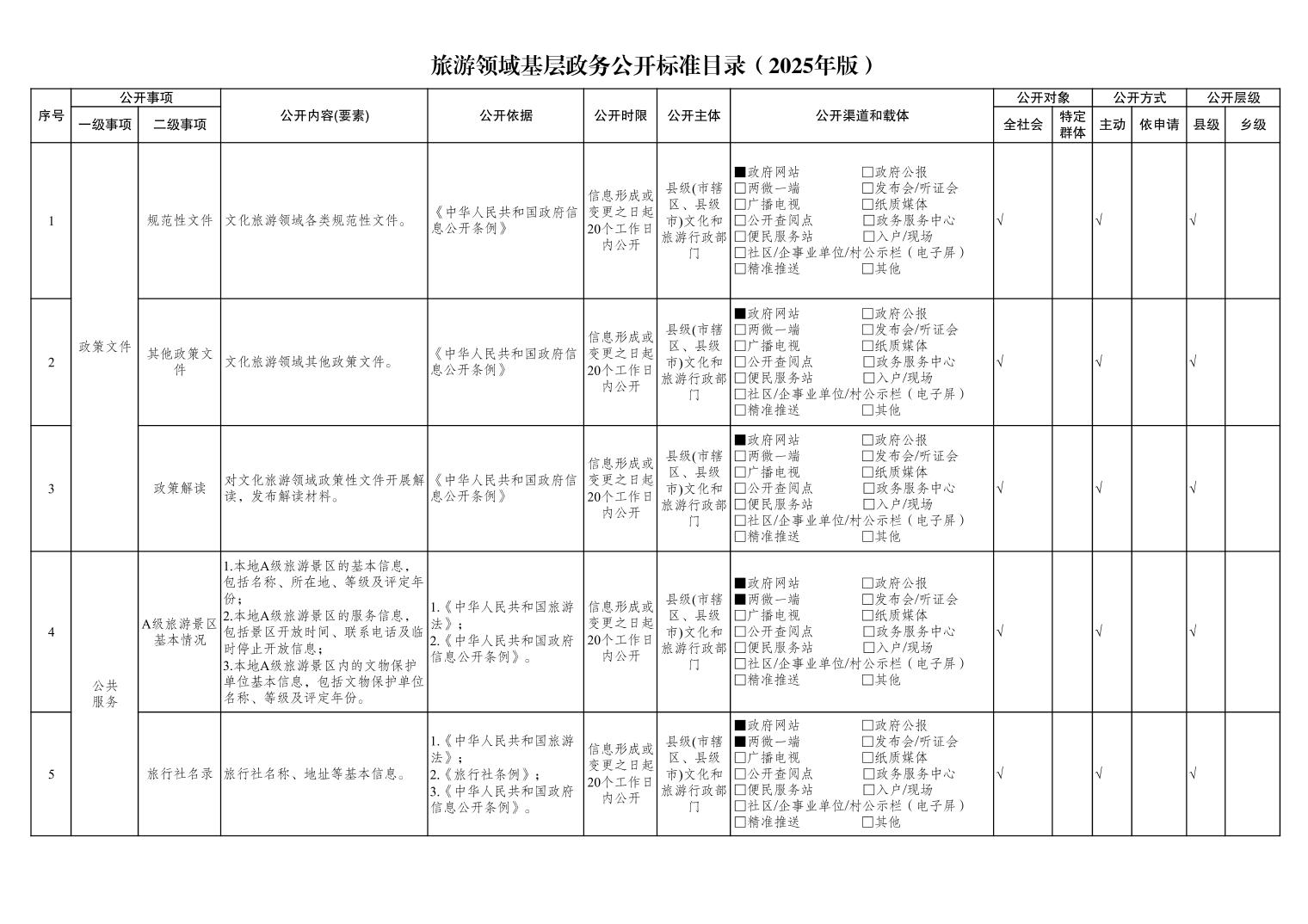 旅游领域基层政务公开标准目录(2025年版)