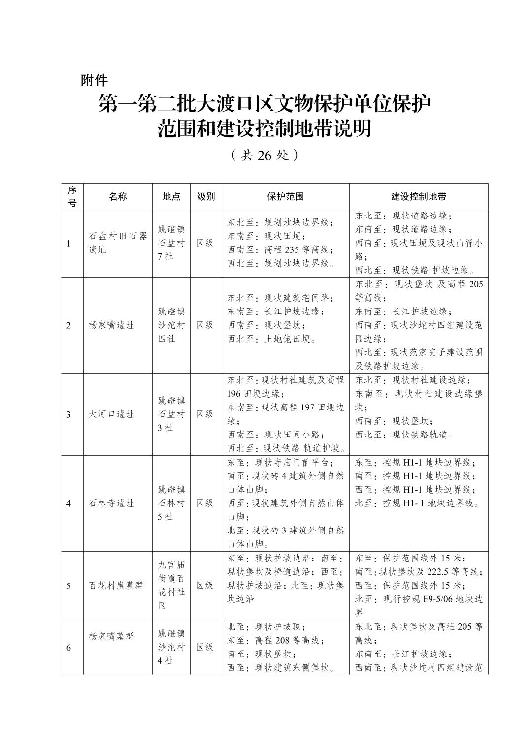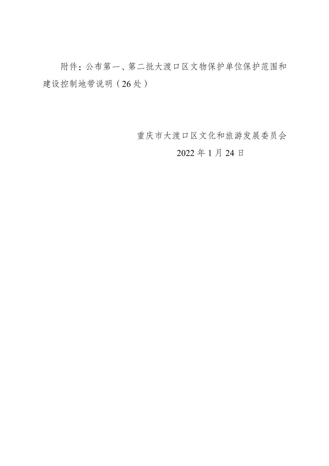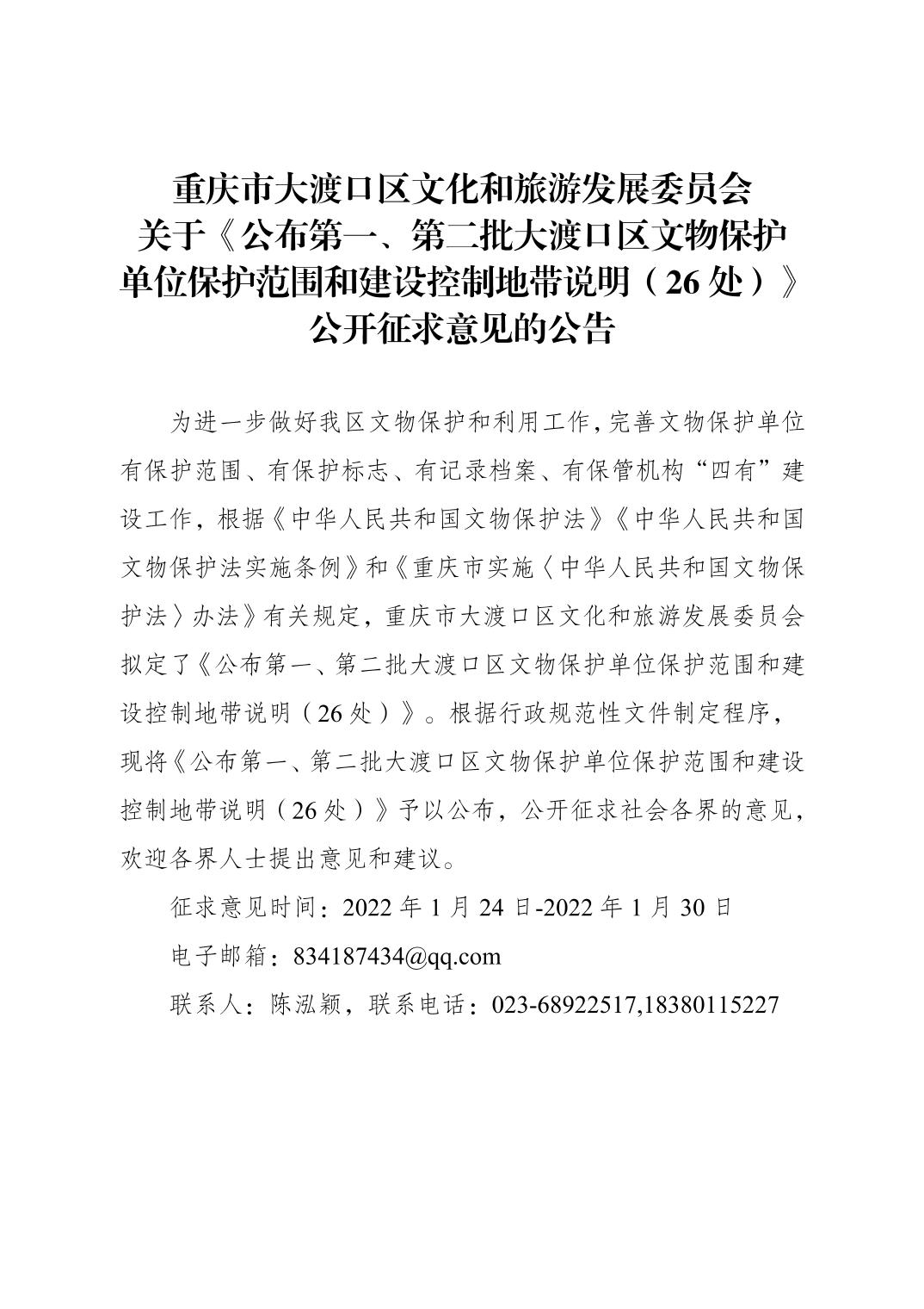 重庆市大渡口区文化和旅游发展委员会关于《公布第一、第二批大渡口区文物保护单位保护范围和建设控制地带说明(26处)》公开征求意见的公告.pdf