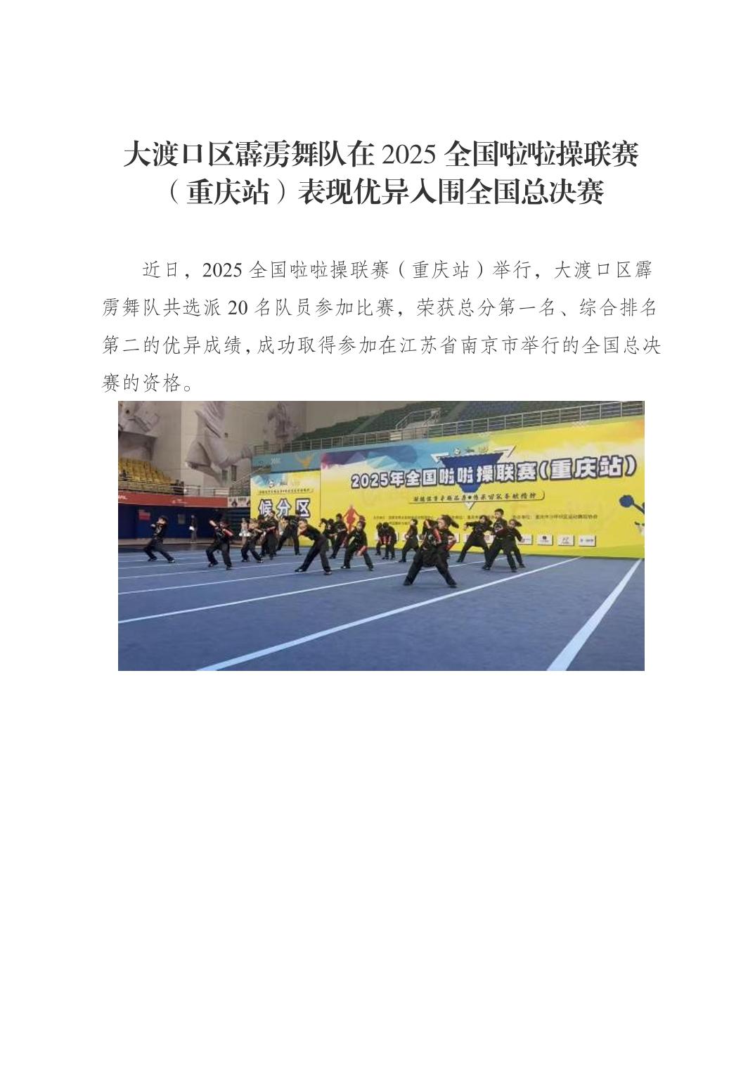 大渡口区霹雳舞队在2025全国啦啦操联赛(重庆站)表现优异入围全国总决赛.doc